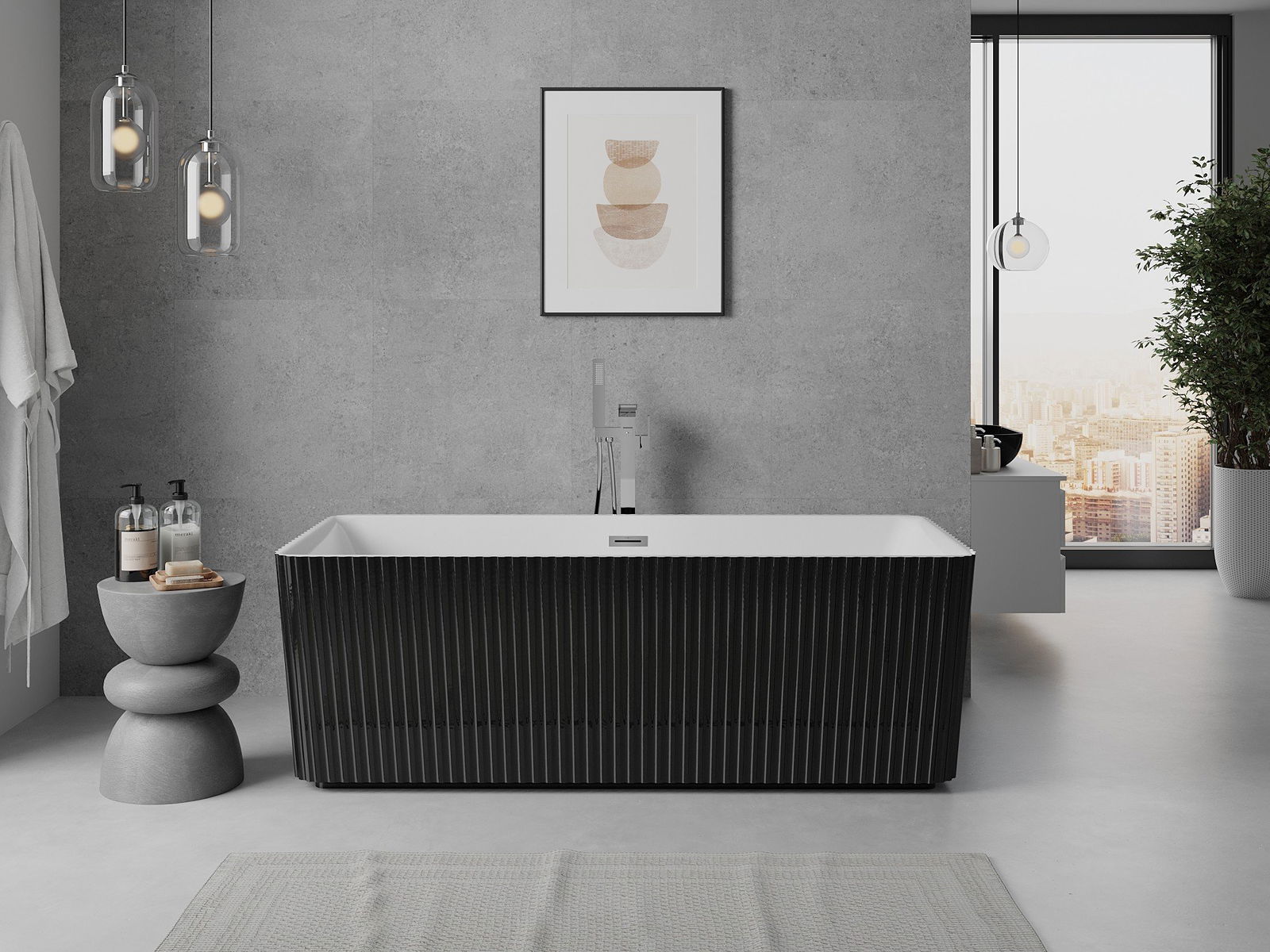 Mexen Nila wanna wolnostojąca ryflowana 170 x 75 cm, biała/czarna, przelew chrom - 52841708075-01