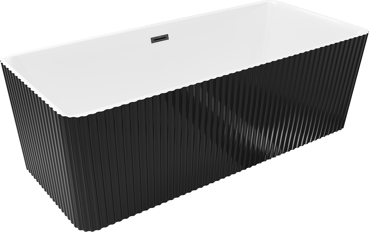 Specyfikacja produktu: Rozmiar: 170 x 75 cm Wysokość: 58 cm Głębokość: 45 cm Montaż: Wolnostojąca Materiał: Akryl sanitarny Kolor: Biały/Czarny Wykończenie: Czarny Struktura: Ryflowana Otwór przelewowy. Tak Otwór na baterie: Nie W komplecie syfon oraz korek klik klak Odporność na matowienie i promienie uv
