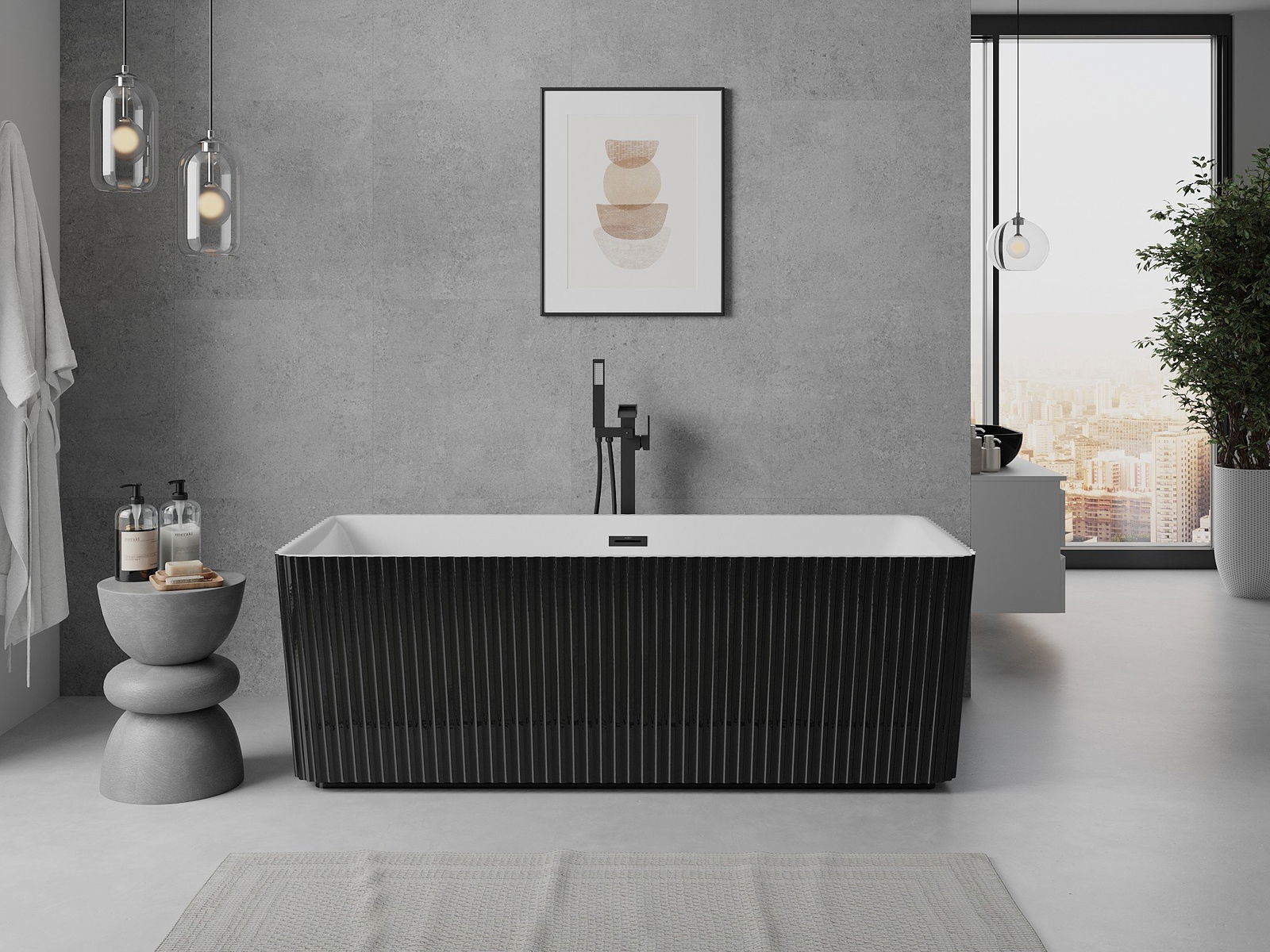 • Mexen Nila wanna wolnostojąca ryflowana 170 x 75 cm, biała/czarna, przelew czarny - 52841708075-70