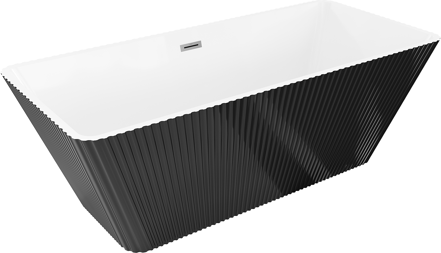 Specyfikacja produktu: Rozmiar: 170 x 75 cm Wysokość: 58 cm Głębokość: 45 cm Montaż: Wolnostojąca Materiał: Akryl sanitarny Kolor: Biały/Czarny Wykończenie: Gun metal Struktura: Ryflowana Otwór przelewowy. Tak Otwór na baterie: Nie W komplecie syfon oraz korek klik klak Odporność na matowienie i promienie uv