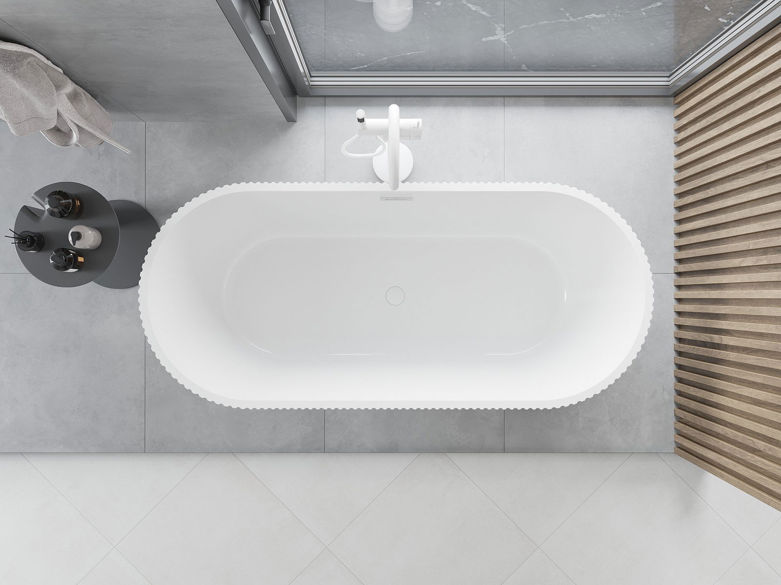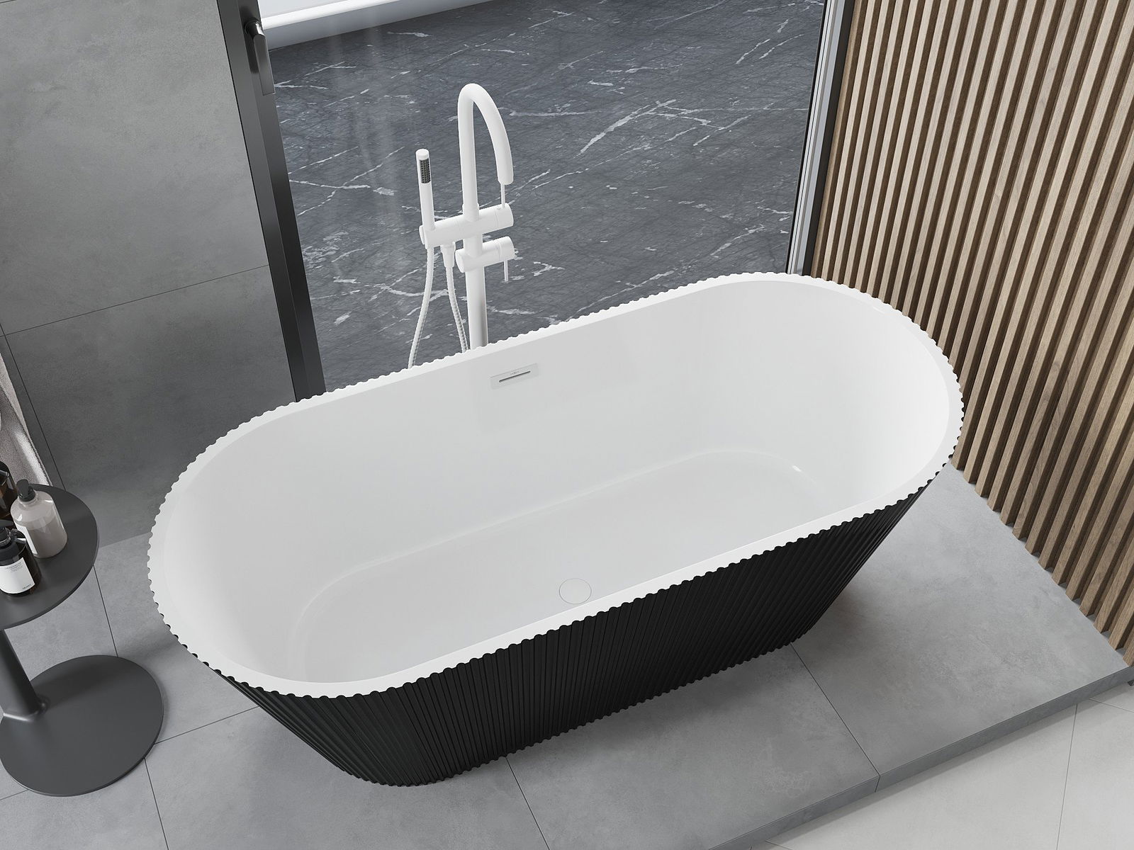 • Mexen Yara wanna wolnostojąca ryflowana 170 x 75 cm, biała/czarna, przelew biały - 52861707575-20