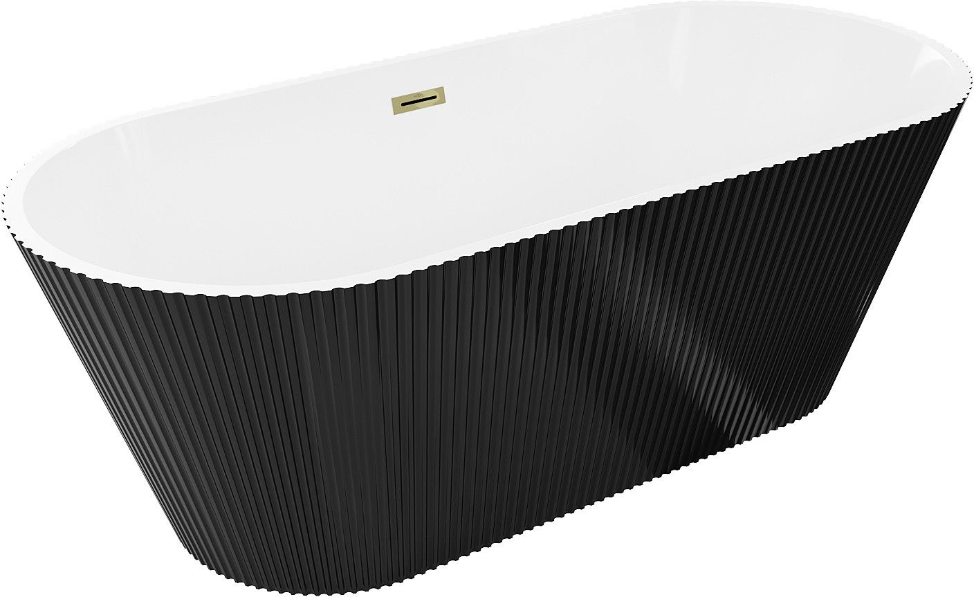 Mexen Yara wanna wolnostojąca ryflowana 170 x 75 cm, biała/czarna, przelew złoty - 52861707575-50