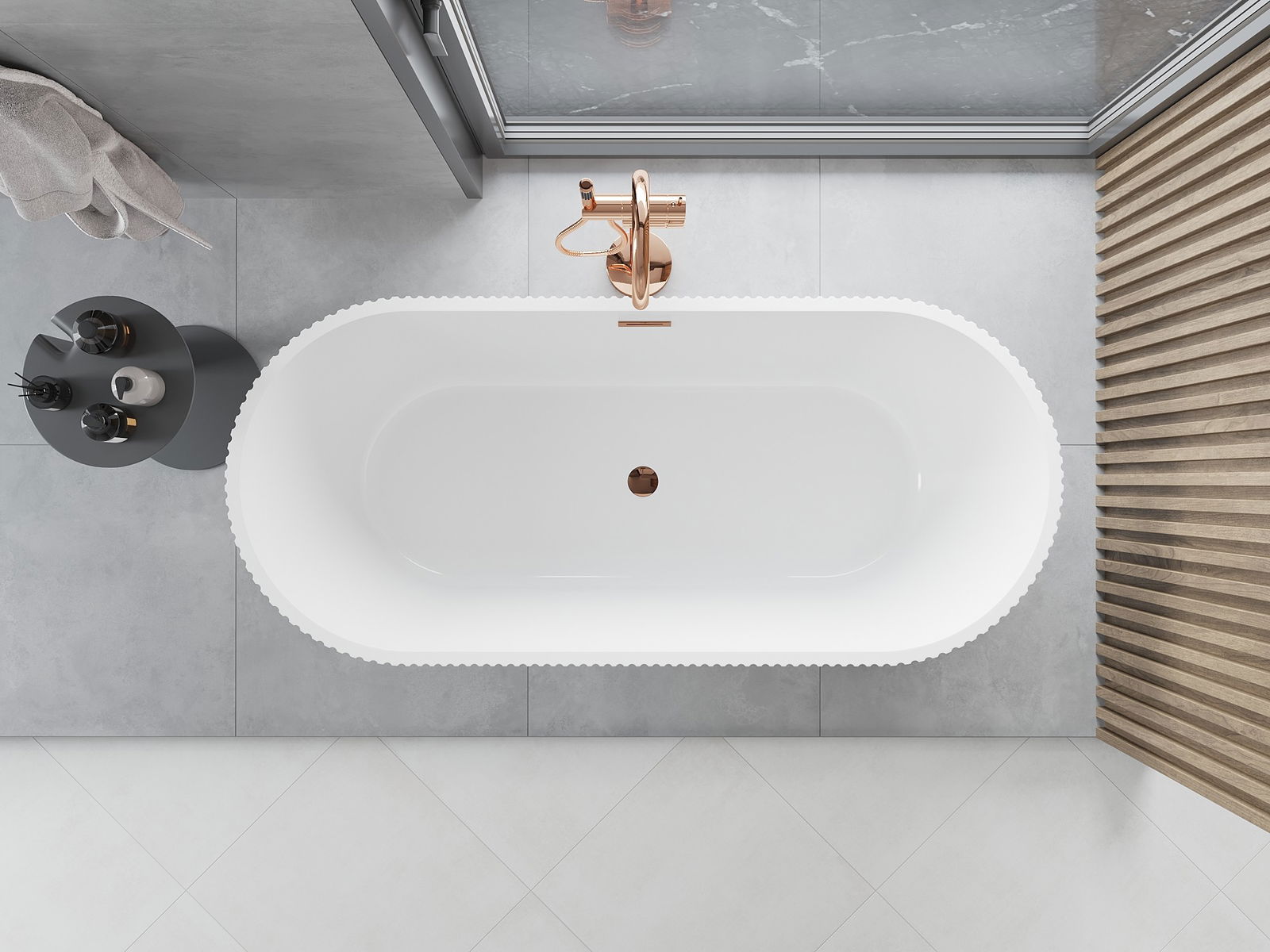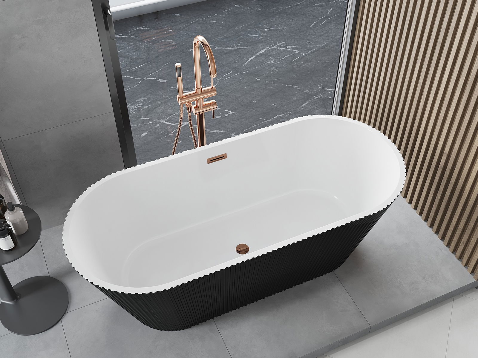 • Mexen Yara wanna wolnostojąca ryflowana 170 x 75 cm, biała/czarna, przelew różowe złoto - 52861707575-60