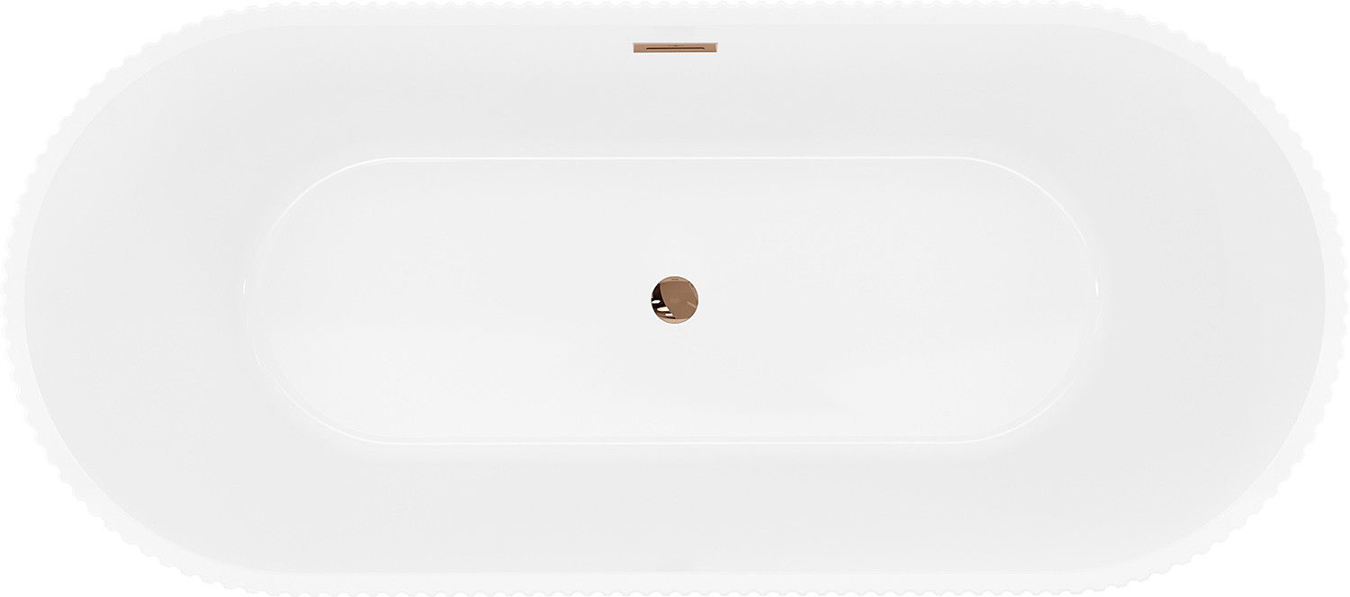 Specyfikacja produktu: Rozmiar: 170 x 75 cm Wysokość: 58 cm Głębokość: 45 cm Montaż: Wolnostojąca Materiał: Akryl sanitarny Kolor: Biały/Czarny Wykończenie: Różowe złoto Struktura: Ryflowana Otwór przelewowy. Tak Otwór na baterie: Nie W komplecie syfon oraz korek klik klak Odporność na matowienie i promienie uv