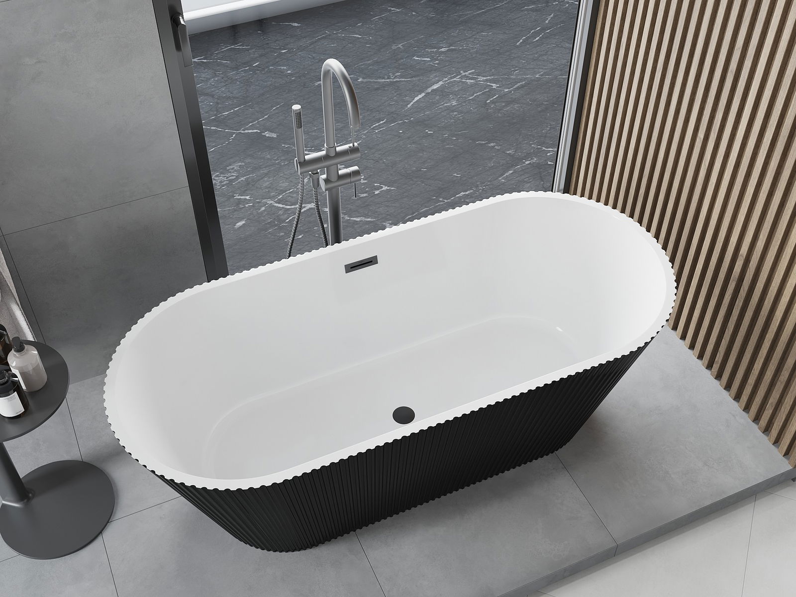 • Mexen Yara wanna wolnostojąca ryflowana 170 x 75 cm, biała/czarna, przelew gun metal - 52861707575-95