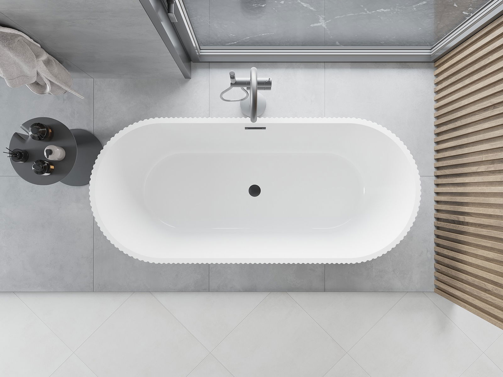 Jest to nowoczesny materiał łączący elegancki wygląd z wysoką trwałością. Jest odporny na uszkodzenia mechaniczne, łatwy w czyszczeniu i przyjemny w dotyku. Transparentna forma oraz cienki rant wanny nadaje jej lekkości i unikalnego charakteru, tworząc efektowny akcent w aranżacji łazienki.