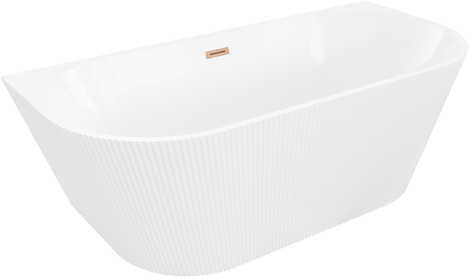 Mexen Oris wanna wolnostojąca przyścienna ryflowana 150 x 75 cm, biała, przelew miedź szczotkowana - 52871507500-65