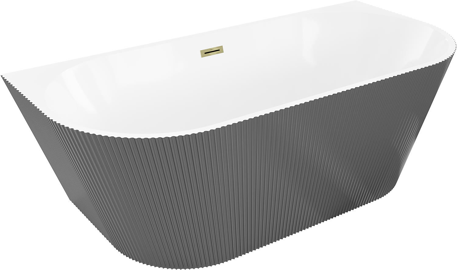 Mexen Oris wanna wolnostojąca przyścienna ryflowana 150 x 75 cm, biała/szara, przelew złoty - 52871507562-50