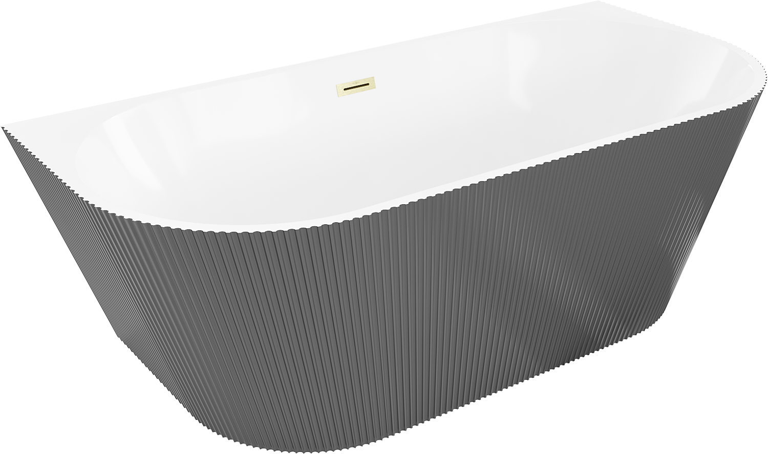 • Mexen Oris wanna wolnostojąca przyścienna ryflowana 150 x 75 cm, biała/szara, przelew złoty szczotkowany - 52871507562-55