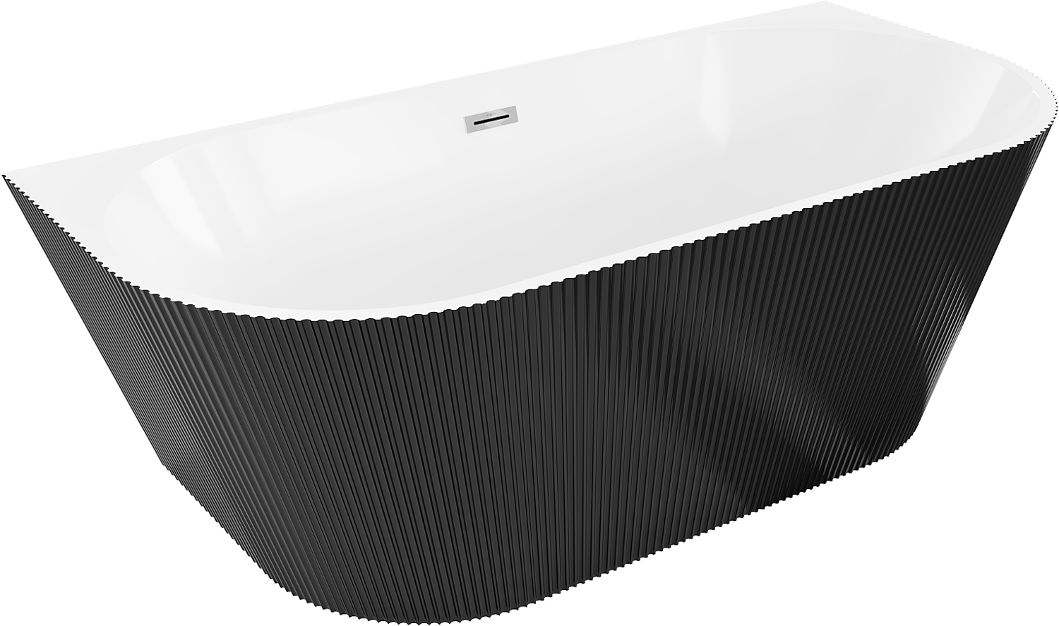 • Mexen Oris wanna wolnostojąca przyścienna ryflowana 150 x 75 cm, biała/czarna, przelew chrom - 52871507575-01