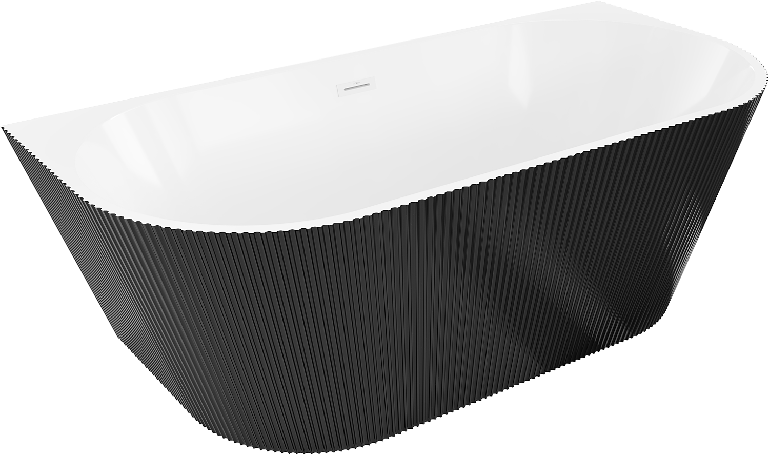 • Mexen Oris wanna wolnostojąca przyścienna ryflowana 150 x 75 cm, biała/czarna, przelew biały - 52871507575-20