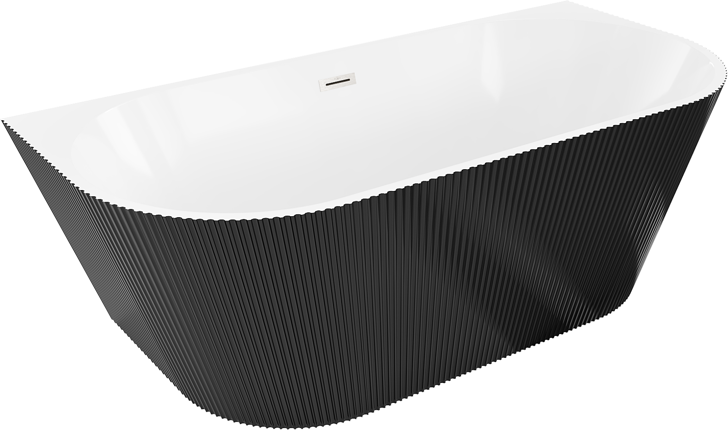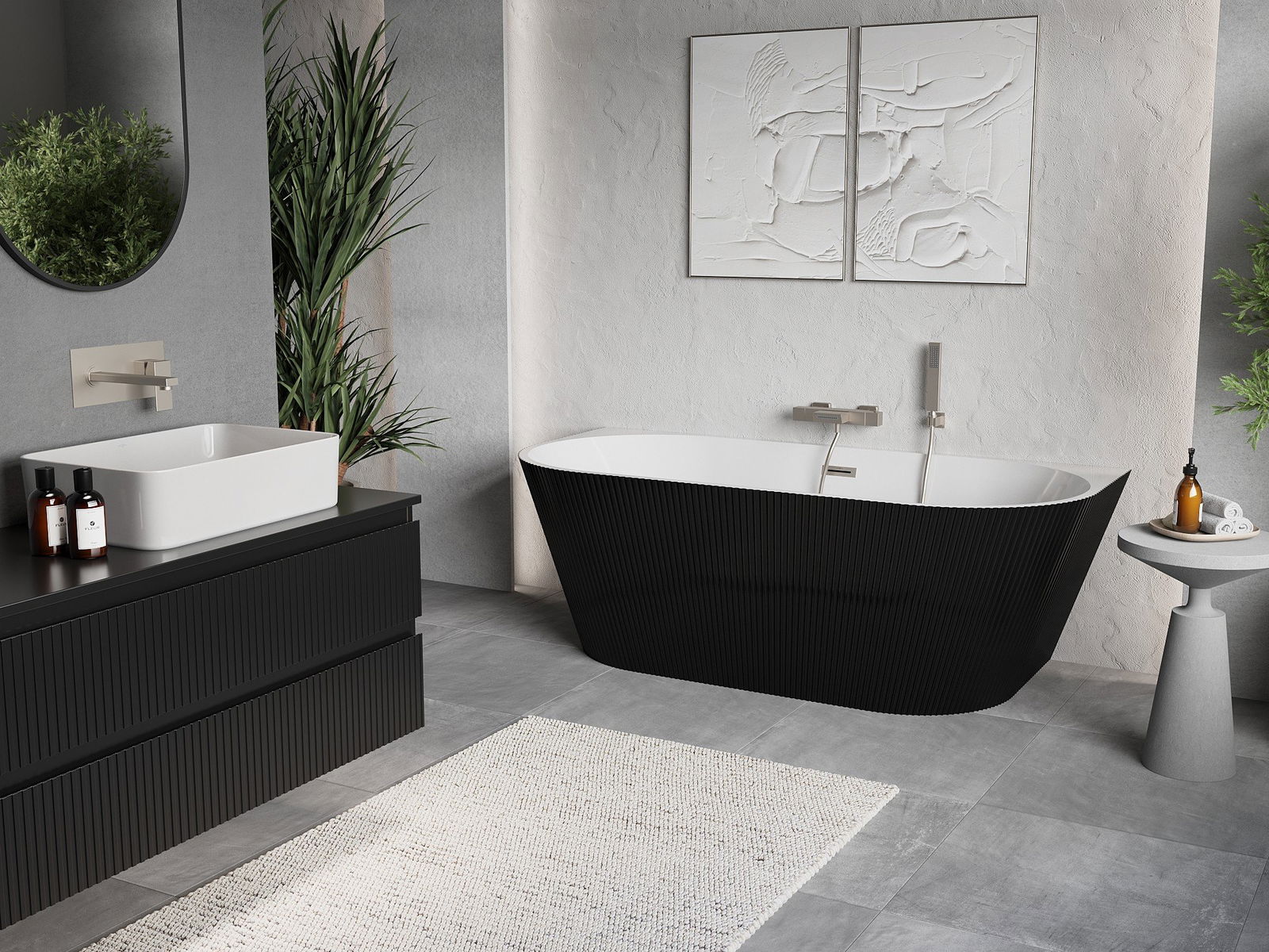 • Mexen Oris wanna wolnostojąca przyścienna ryflowana 150 x 75 cm, biała/czarna, przelew nikiel szczotkowany - 52871507575-97