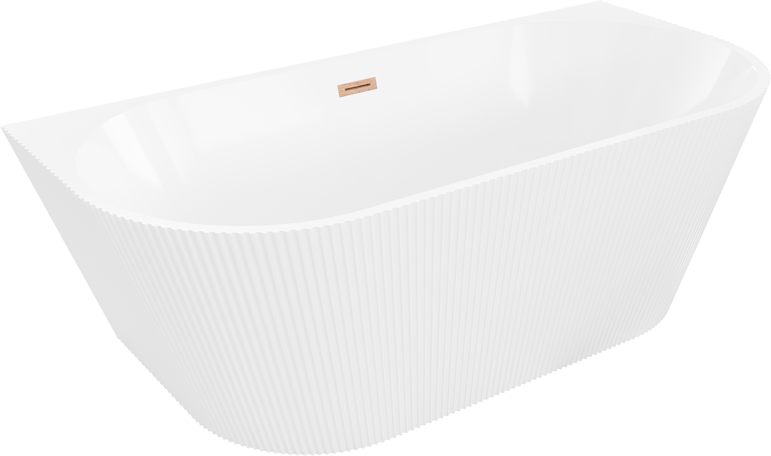 Mexen Oris wanna wolnostojąca przyścienna ryflowana 170 x 80 cm, biała, przelew miedź szczotkowana - 52871708000-65