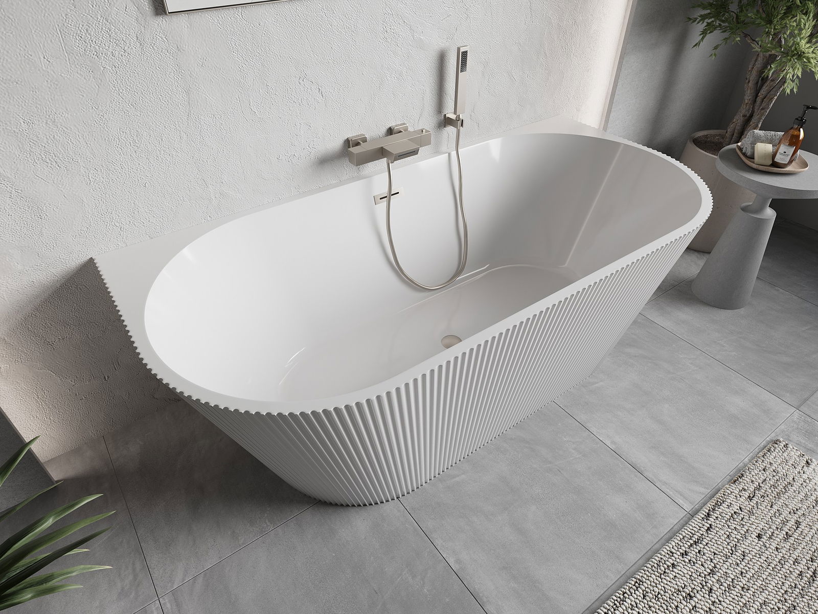 • Mexen Oris wanna wolnostojąca przyścienna ryflowana 170 x 80 cm, biała, przelew nikiel szczotkowany - 52871708000-97