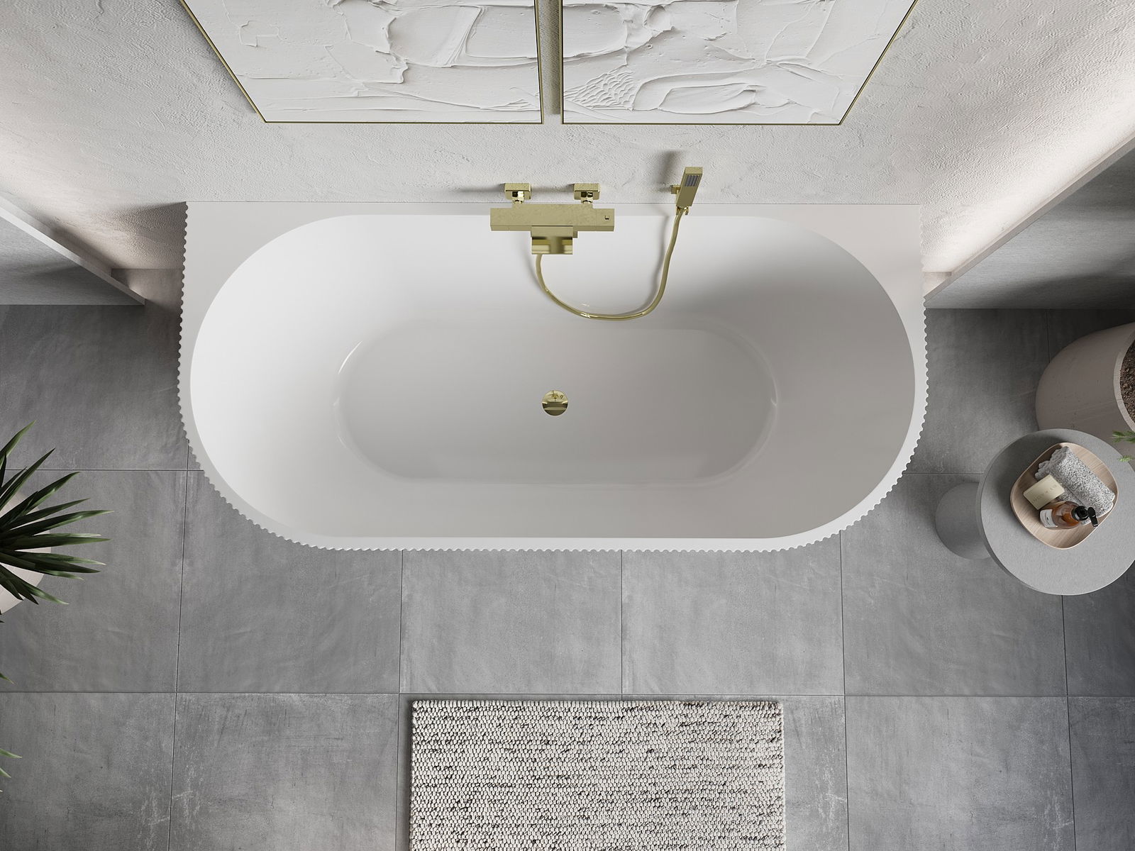 Mexen Oris wanna wolnostojąca przyścienna ryflowana 170 x 80 cm, biała/szara, przelew złoty - 52871708062-50