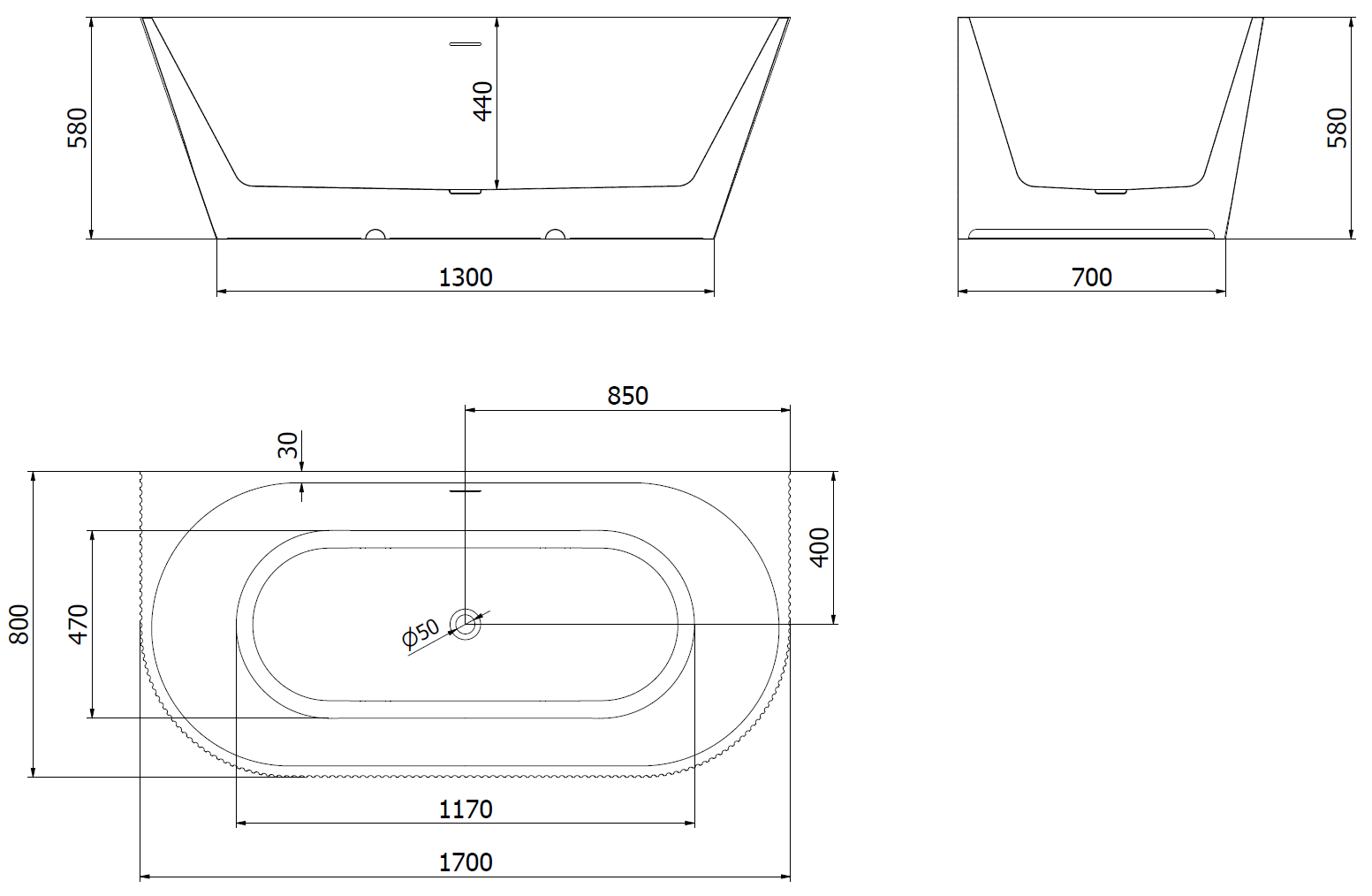 Specyfikacja produktu: Rozmiar: 170 x 80 cm Wysokość: 58 cm Głębokość: 44 cm Montaż: Przyścienna Materiał: Akryl sanitarny Kolor: Biały/Szary Wykończenie: Gun gray szczotkowany Struktura: Ryflowana Otwór przelewowy. Tak Otwór na baterie: Nie W komplecie syfon oraz korek klik klak Odporność na matowienie i promienie uv