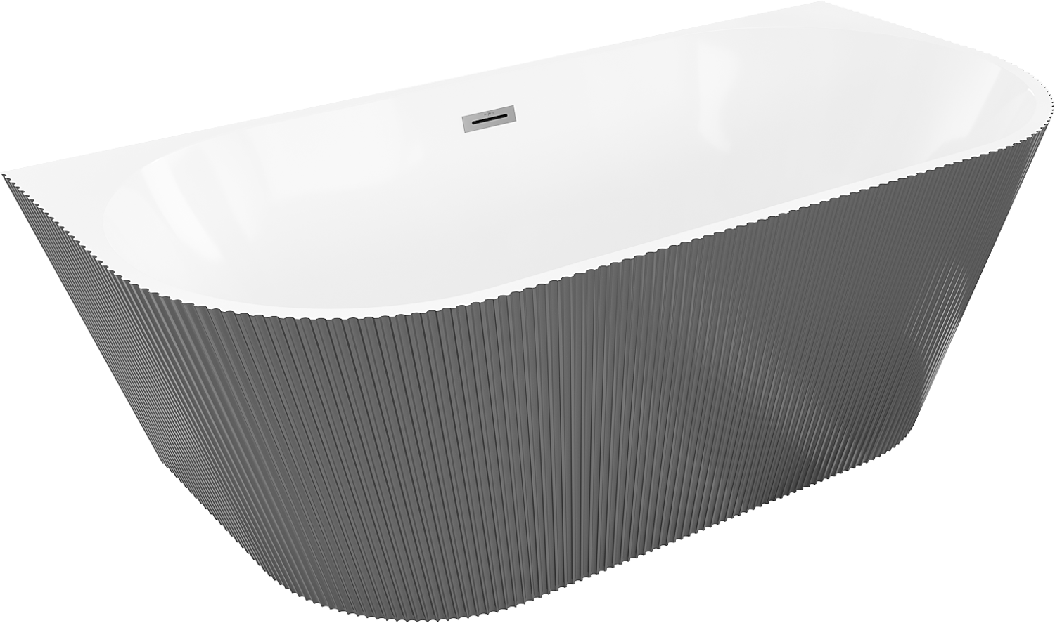 Mexen Oris wanna wolnostojąca przyścienna ryflowana 170 x 80 cm, biała/szara, przelew gun metal - 52871708062-95