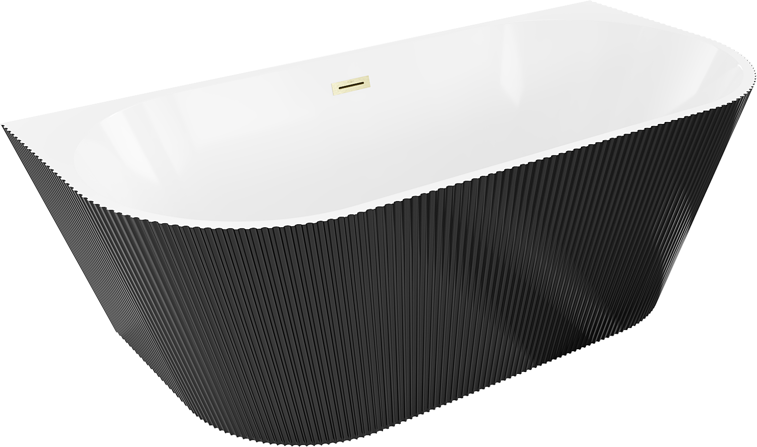 Mexen Oris wanna wolnostojąca przyścienna ryflowana 170 x 80 cm, biała/czarna, przelew złoty szczotkowany - 52871708075-55
