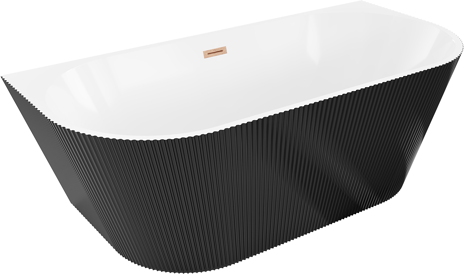 Mexen Oris wanna wolnostojąca przyścienna ryflowana 170 x 80 cm, biała/czarna, przelew miedź szczotkowana - 52871708075-65