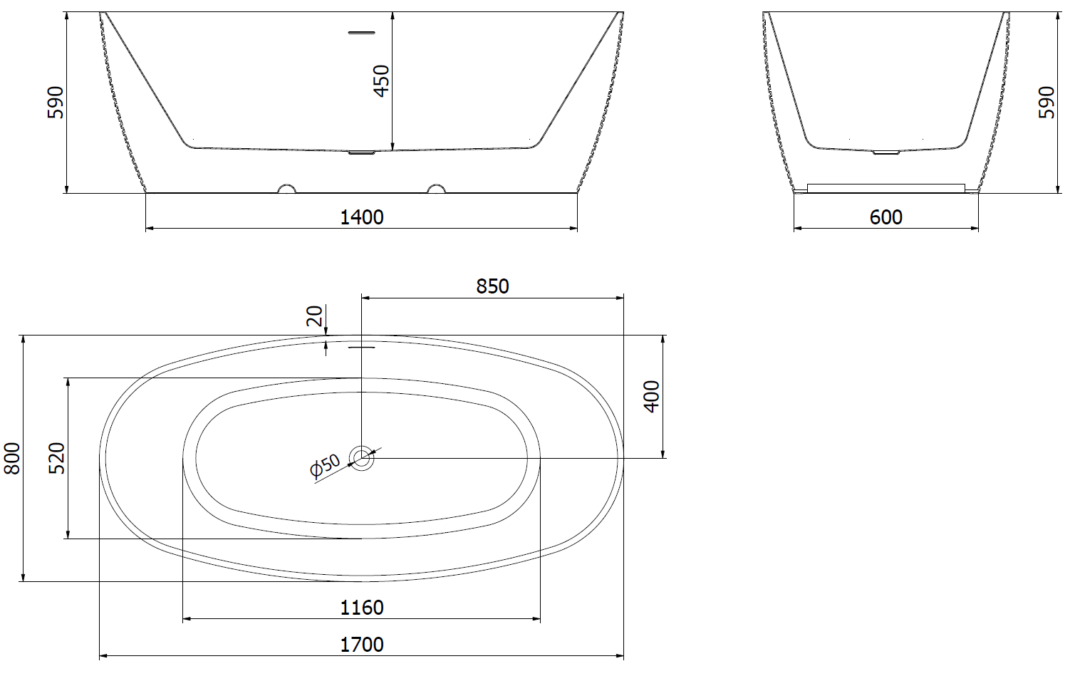 Specyfikacja produktu: Rozmiar: 170 x 80 cm Wysokość: 59 cm Głębokość: 45 cm Montaż: Wolnostojąca Materiał: Akryl sanitarny Kolor: Biały/Czarny Wykończenie: Nikiel szczotkowany Struktura: Wzór Otwór przelewowy. Tak Otwór na baterie: Nie W komplecie syfon oraz korek klik klak Odporność na matowienie i promienie uv