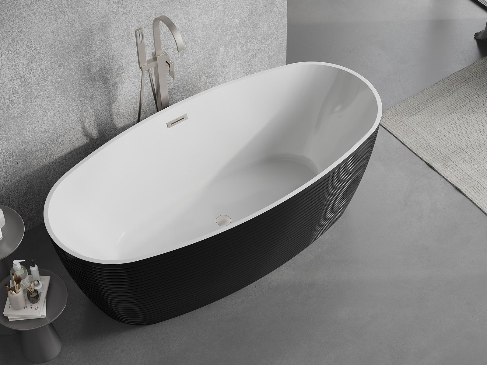 Jest to nowoczesny materiał łączący elegancki wygląd z wysoką trwałością. Jest odporny na uszkodzenia mechaniczne, łatwy w czyszczeniu i przyjemny w dotyku. Transparentna forma oraz cienki rant wanny nadaje jej lekkości i unikalnego charakteru, tworząc efektowny akcent w aranżacji łazienki.