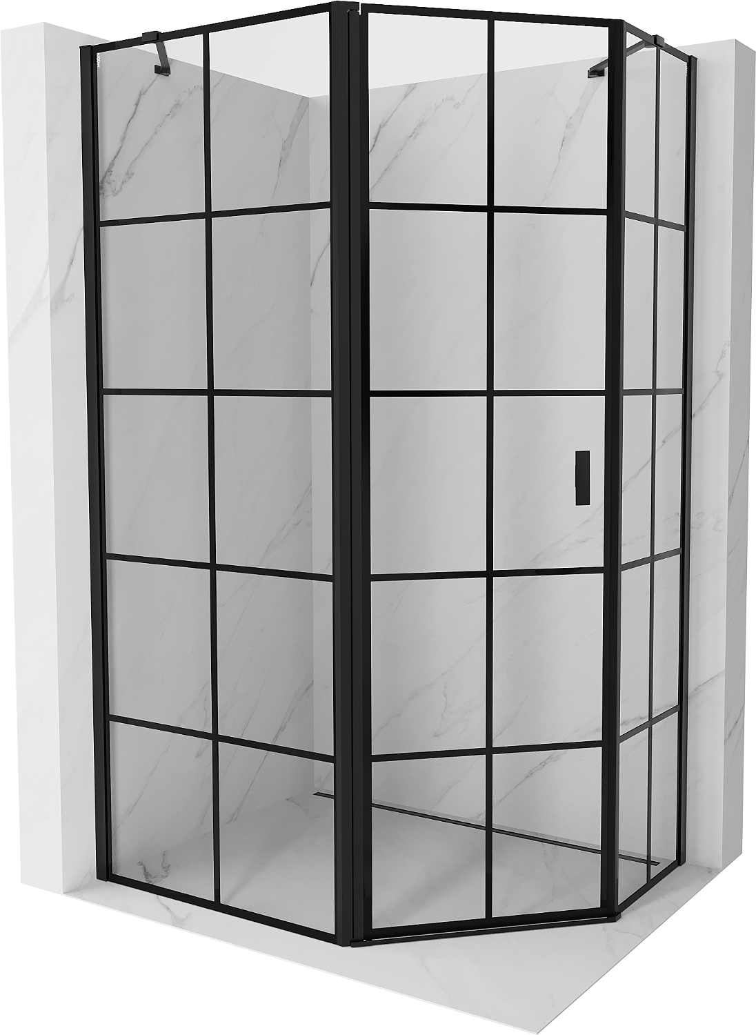 Mexen Mist kabina prysznicowa pięciokątna asymetryczna uchylna lewa 100 x 80 cm, czarna kratka, czarna - 8A8-100-080-70-77-L
