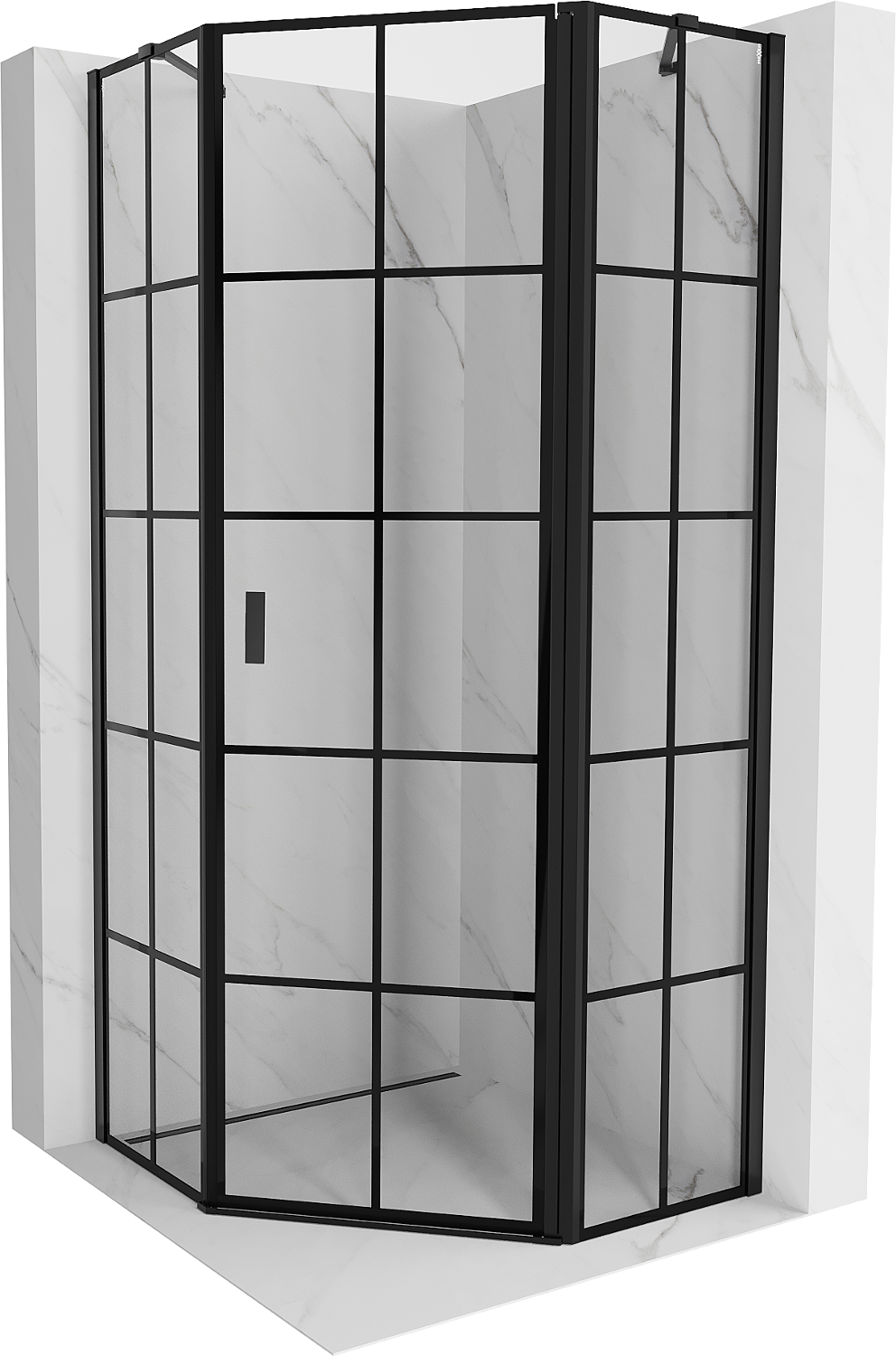 Mexen Mist kabina prysznicowa pięciokątna uchylna prawa 80 x 80 cm, czarna kratka, czarna - 8A8-080-080-70-77-P