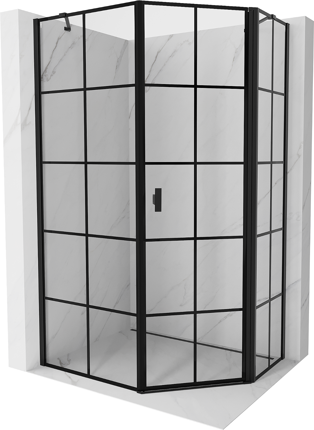 Mexen Mist kabina prysznicowa pięciokątna asymetryczna uchylna prawa 90 x 100 cm, czarna kratka, czarna - 8A8-090-100-70-77-P