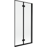 Specyfikacja produktu: Szerokość: 90 cm Wysokość: 150 cm Rodzaj: 2-skrzydłowy Strona montażu: Prawa Typ: Ruchomy/Składany Rodzaj szkła: Hartowane Kolor szkła: Transparentny Grubość szkła: 6 mm Wykończenie: Chrom Powłoka ułatwiająca czyszczenie Możliwa regulacja szerokości Mosiężne zawiasy zlicowane z tafla szkła Uszczelki elastomerowe odprowadzające wodę