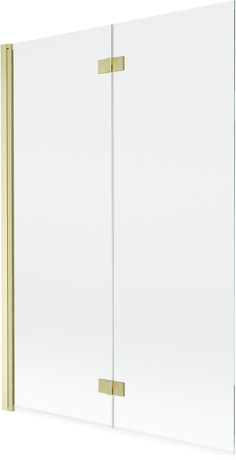Specyfikacja produktu: Szerokość: 120 cm Wysokość: 150 cm Rodzaj: 2-skrzydłowy Strona montażu: Lewa Typ: Ruchomy/Składany Rodzaj szkła: Hartowane Kolor szkła: Transparentny Grubość szkła: 6 mm Wykończenie: Złoty szczotkowany Powłoka ułatwiająca czyszczenie Możliwa regulacja szerokości Mosiężne zawiasy zlicowane z tafla szkła Uszczelki elastomerowe odprowadzające wodę