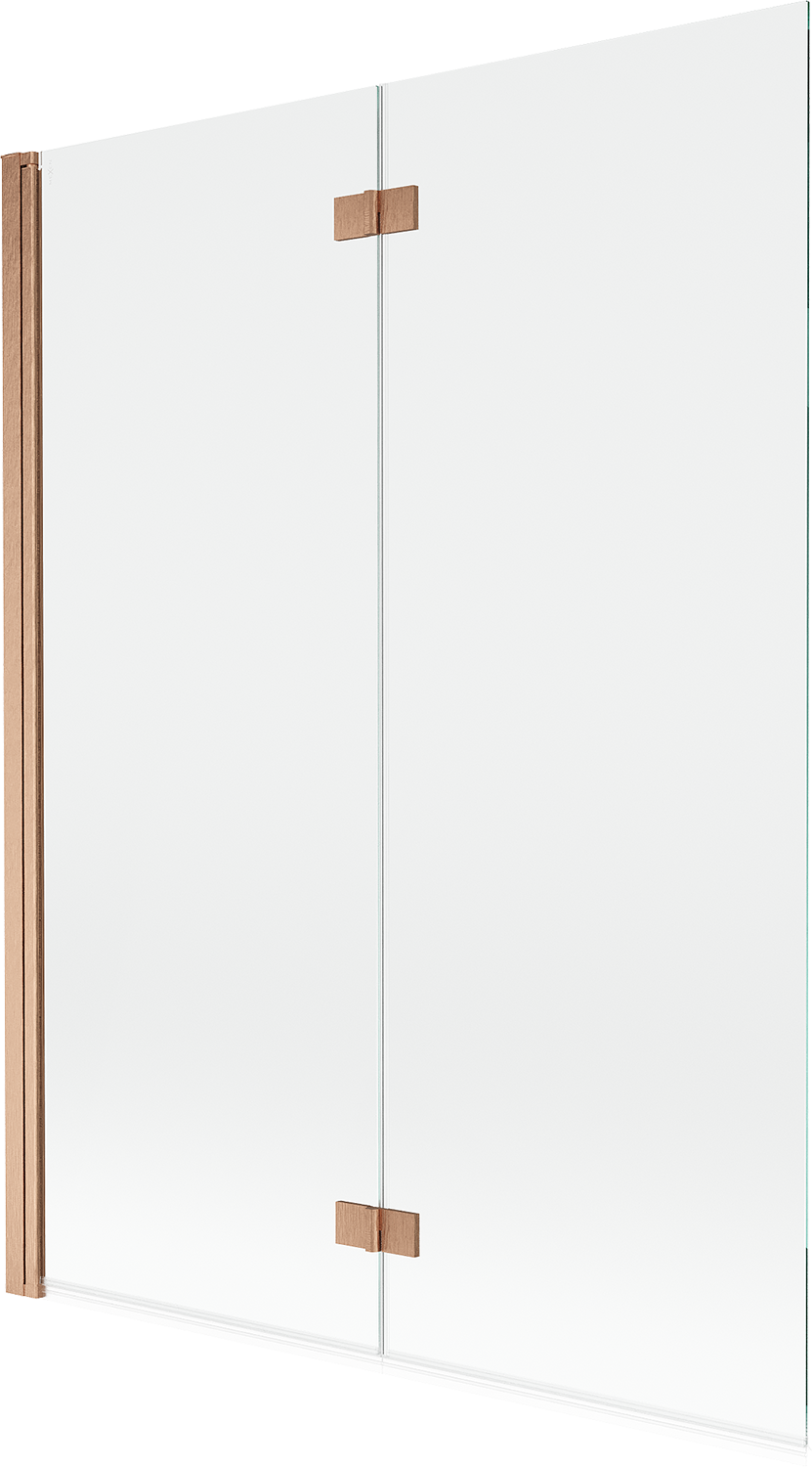 Specyfikacja produktu: Szerokość: 130 cm Wysokość: 150 cm Rodzaj: 2-skrzydłowy Strona montażu: Lewa Typ: Ruchomy/Składany Rodzaj szkła: Hartowane Kolor szkła: Transparentny Grubość szkła: 6 mm Wykończenie: Miedź szczotkowana Powłoka ułatwiająca czyszczenie Możliwa regulacja szerokości Mosiężne zawiasy zlicowane z tafla szkła Uszczelki elastomerowe odprowadzające wodę