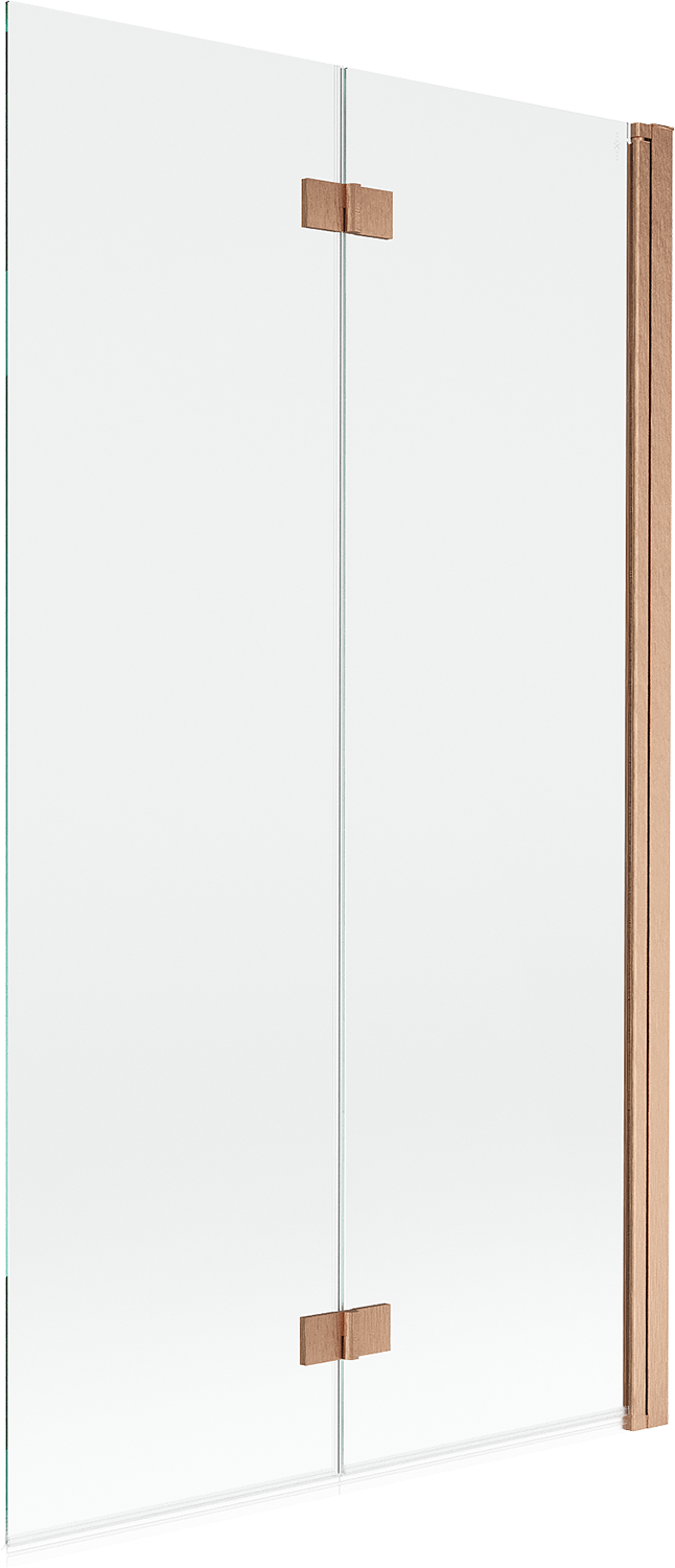 Specyfikacja produktu: Szerokość: 100 cm Wysokość: 150 cm Rodzaj: 2-skrzydłowy Strona montażu: Prawa Typ: Ruchomy/Składany Rodzaj szkła: Hartowane Kolor szkła: Transparentny Grubość szkła: 6 mm Wykończenie: Miedź szczotkowana Powłoka ułatwiająca czyszczenie Możliwa regulacja szerokości Mosiężne zawiasy zlicowane z tafla szkła Uszczelki elastomerowe odprowadzające wodę