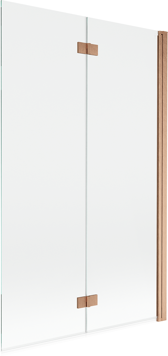 Specyfikacja produktu: Szerokość: 110 cm Wysokość: 150 cm Rodzaj: 2-skrzydłowy Strona montażu: Prawa Typ: Ruchomy/Składany Rodzaj szkła: Hartowane Kolor szkła: Transparentny Grubość szkła: 6 mm Wykończenie: Miedź szczotkowana Powłoka ułatwiająca czyszczenie Możliwa regulacja szerokości Mosiężne zawiasy zlicowane z tafla szkła Uszczelki elastomerowe odprowadzające wodę