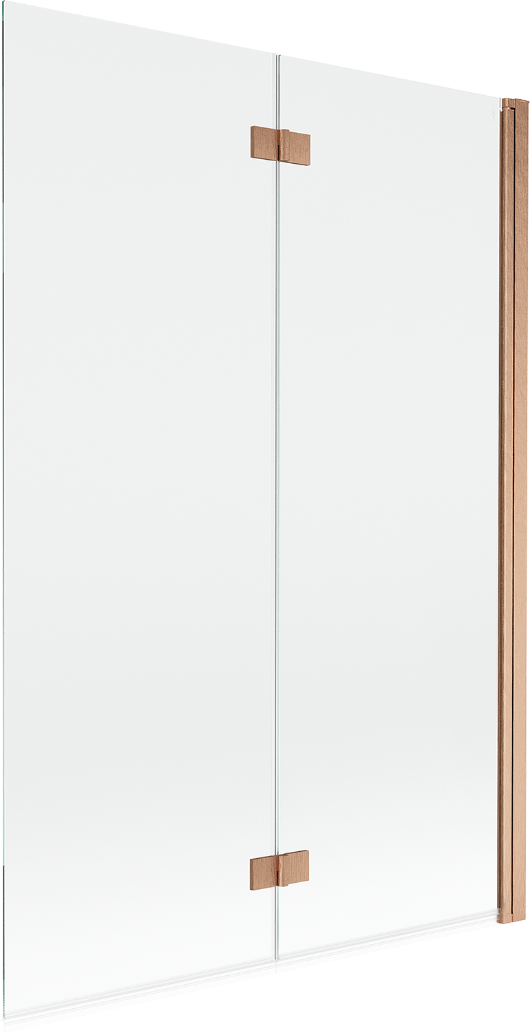 Specyfikacja produktu: Szerokość: 120 cm Wysokość: 150 cm Rodzaj: 2-skrzydłowy Strona montażu: Prawa Typ: Ruchomy/Składany Rodzaj szkła: Hartowane Kolor szkła: Transparentny Grubość szkła: 6 mm Wykończenie: Miedź szczotkowana Powłoka ułatwiająca czyszczenie Możliwa regulacja szerokości Mosiężne zawiasy zlicowane z tafla szkła Uszczelki elastomerowe odprowadzające wodę