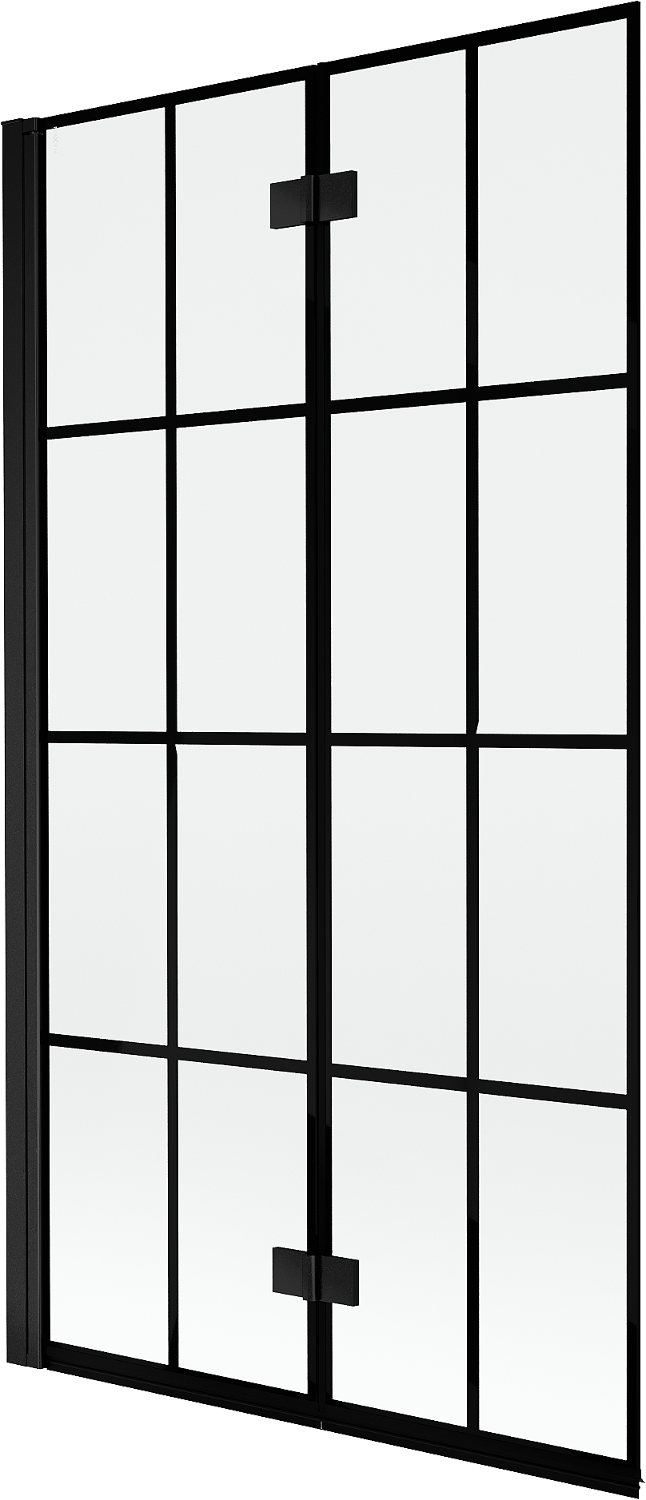 Specyfikacja produktu: Szerokość: 100 cm Wysokość: 150 cm Rodzaj: 2-skrzydłowy Strona montażu: Lewa Typ: Ruchomy/Składany Rodzaj szkła: Hartowane Kolor szkła: Czarna kratka Grubość szkła: 6 mm Wykończenie: Czarny Powłoka ułatwiająca czyszczenie Możliwa regulacja szerokości Mosiężne zawiasy zlicowane z tafla szkła Uszczelki elastomerowe odprowadzające wodę