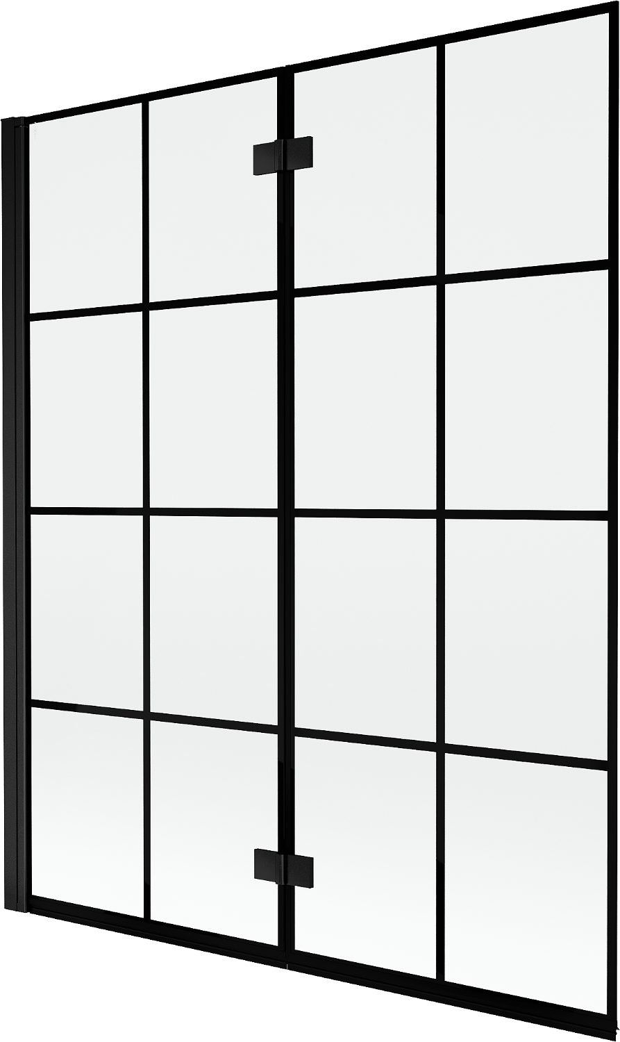 Specyfikacja produktu: Szerokość: 140 cm Wysokość: 150 cm Rodzaj: 2-skrzydłowy Strona montażu: Lewa Typ: Ruchomy/Składany Rodzaj szkła: Hartowane Kolor szkła: Czarna kratka Grubość szkła: 6 mm Wykończenie: Czarny Powłoka ułatwiająca czyszczenie Możliwa regulacja szerokości Mosiężne zawiasy zlicowane z tafla szkła Uszczelki elastomerowe odprowadzające wodę