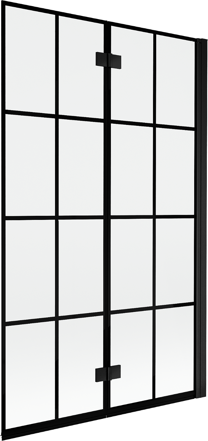 Specyfikacja produktu: Szerokość: 110 cm Wysokość: 150 cm Rodzaj: 2-skrzydłowy Strona montażu: Prawa Typ: Ruchomy/Składany Rodzaj szkła: Hartowane Kolor szkła: Czarna kratka Grubość szkła: 6 mm Wykończenie: Czarny Powłoka ułatwiająca czyszczenie Możliwa regulacja szerokości Mosiężne zawiasy zlicowane z tafla szkła Uszczelki elastomerowe odprowadzające wodę