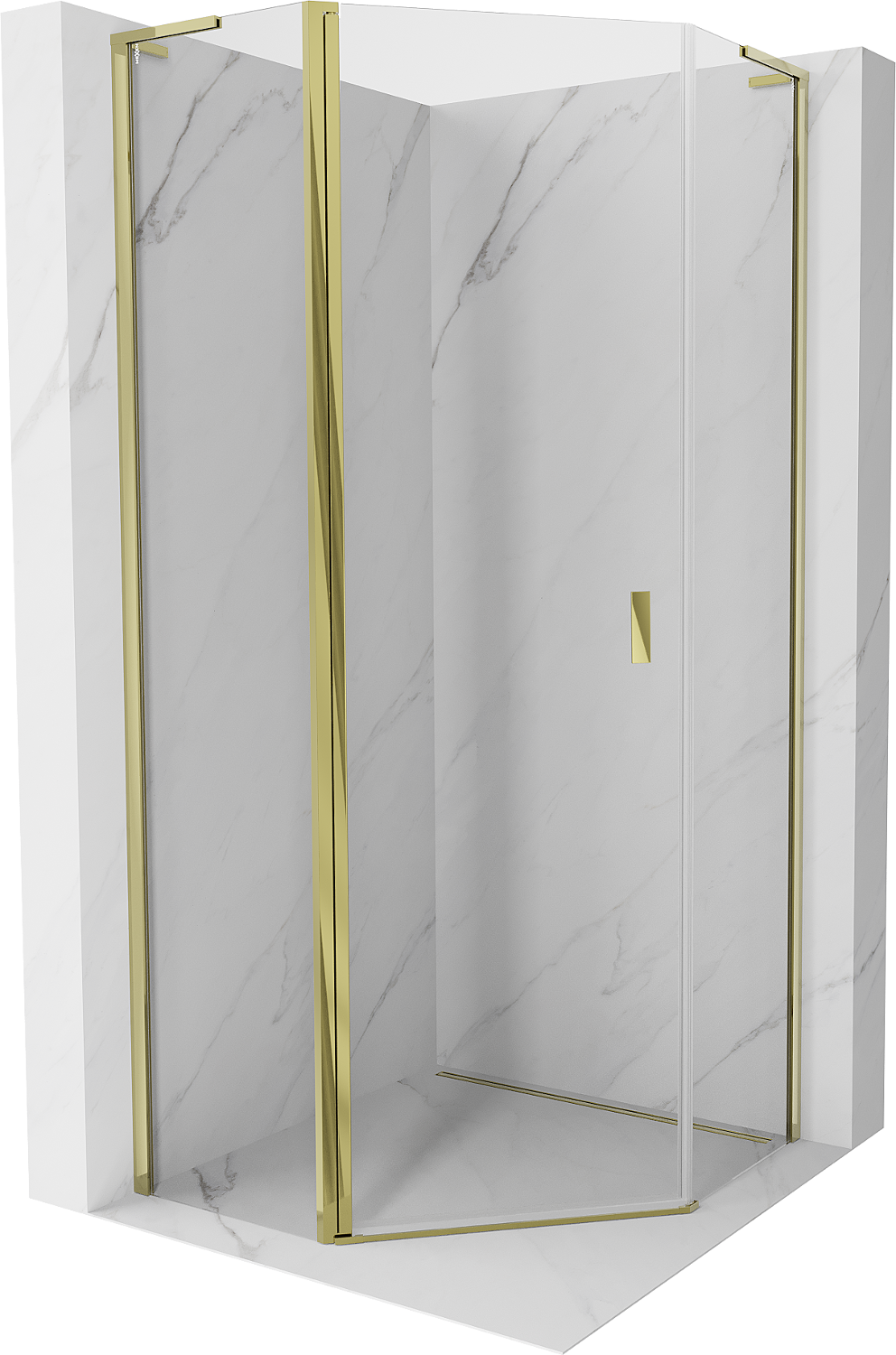 Mexen Mist L kabina prysznicowa pięciokątna uchylna 80 x 80 cm, transparent, złota - 8A8L-080-080-50-00