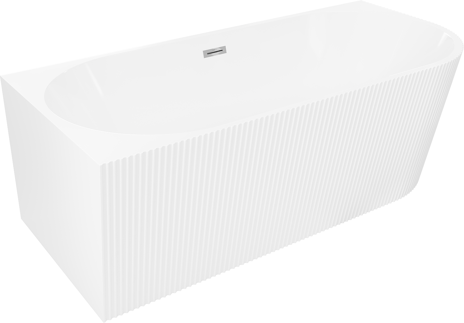 • Mexen Silo wanna wolnostojąca narożna lewa ryflowana  150 x 75 cm, biała, przelew chrom - 52891507500L-01