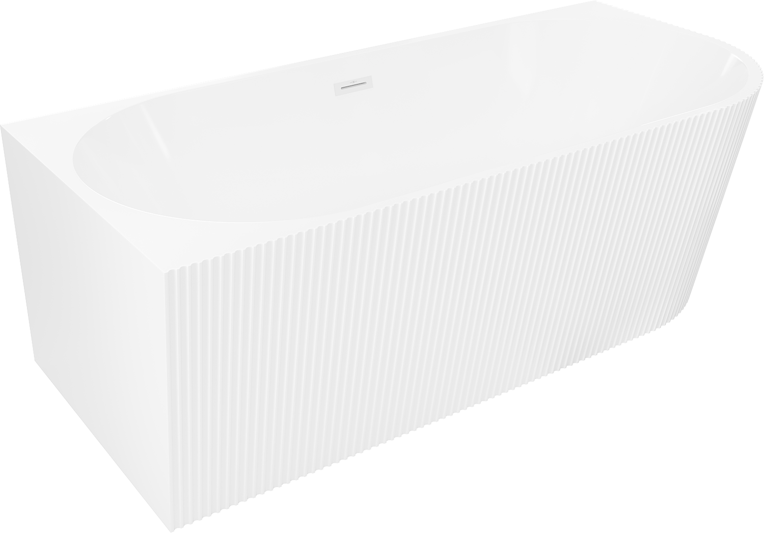 Mexen Silo wanna wolnostojąca narożna lewa ryflowana  150 x 75 cm, biała, przelew biały - 52891507500L-20