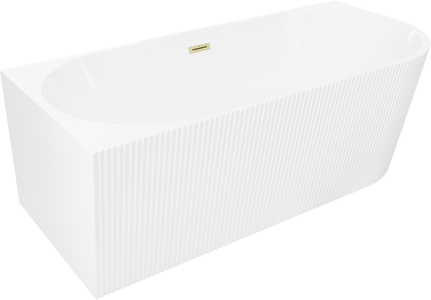• Mexen Silo wanna wolnostojąca narożna lewa ryflowana  150 x 75 cm, biała, przelew złoty szczotkowany - 52891507500L-55