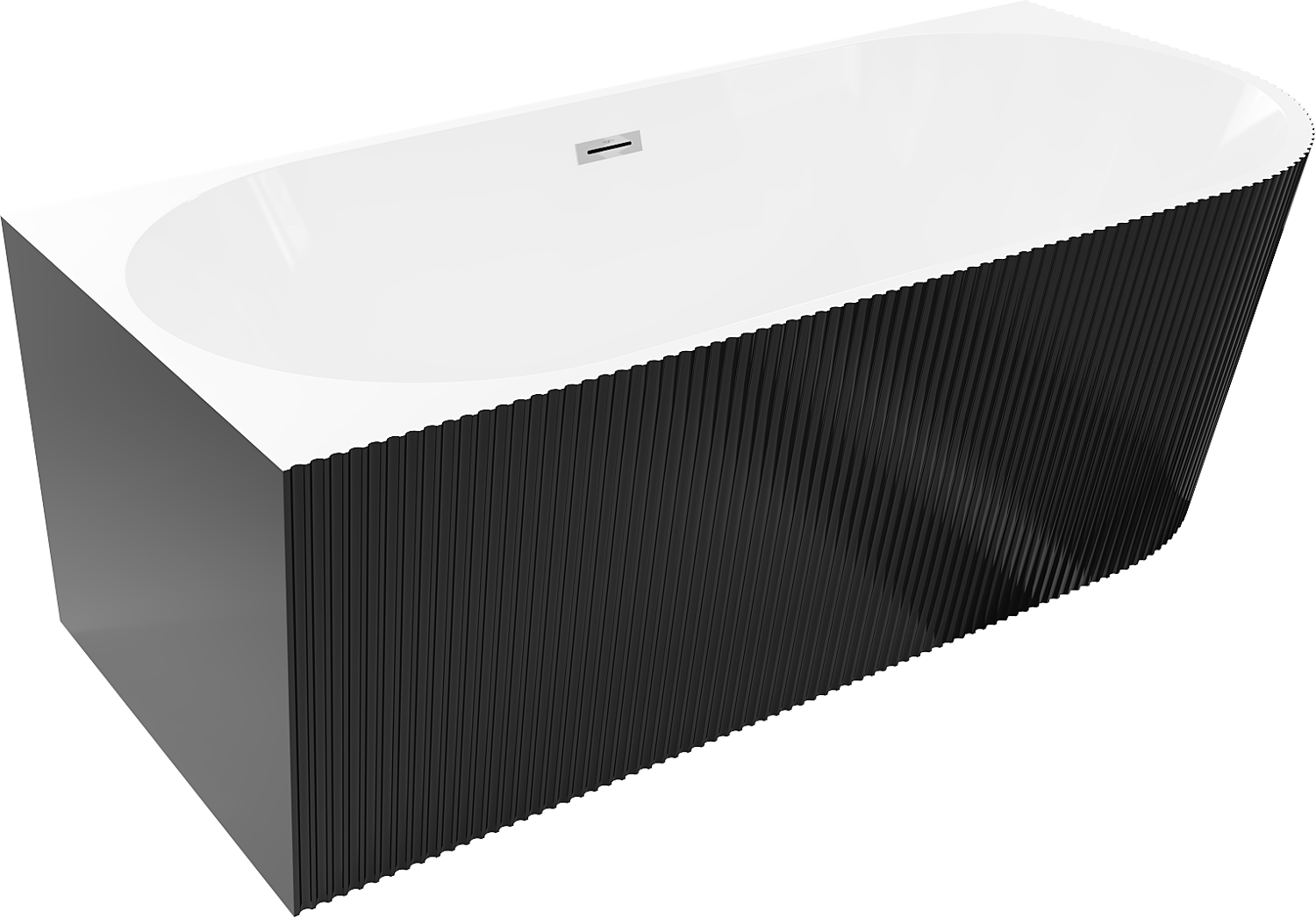 • Mexen Silo wanna wolnostojąca narożna lewa ryflowana  150 x 75 cm, biała/czarna, przelew chrom - 52891507575L-01