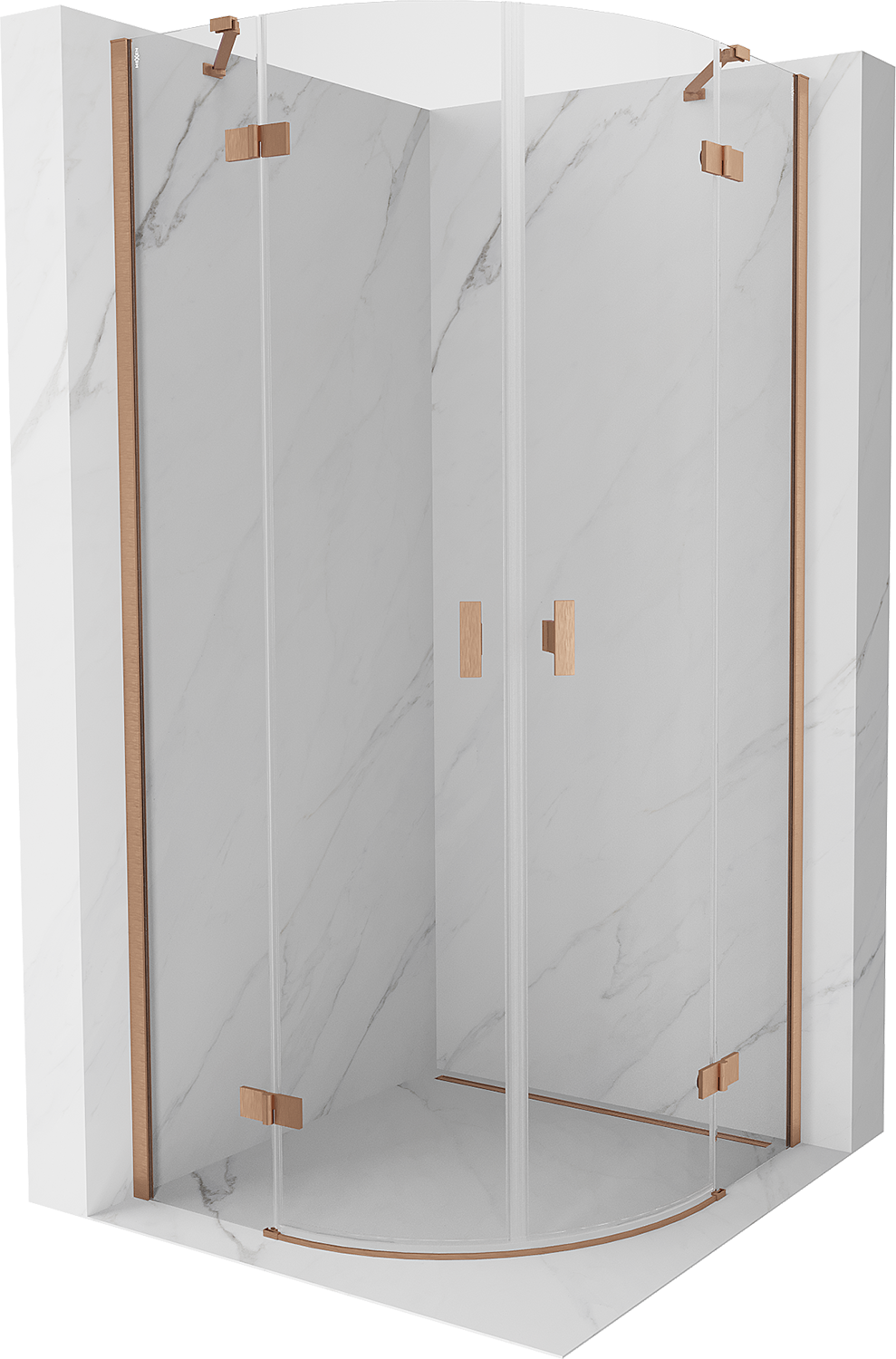 Mexen Mist kabina prysznicowa półokrągła uchylna 80 x 80 cm, transparent, miedź szczotkowana - 8A33-080-080-65-00
