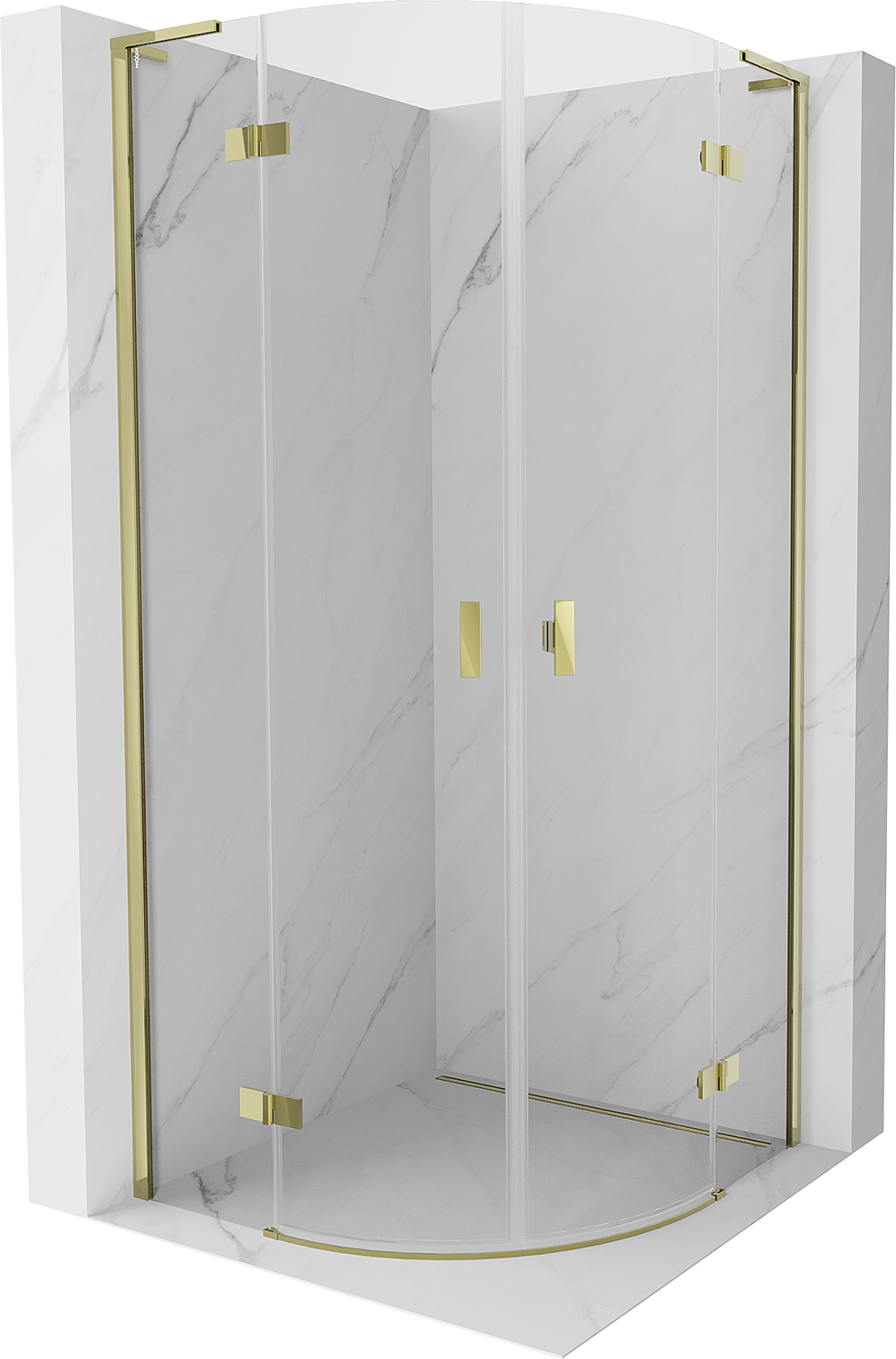 Mexen Mist L kabina prysznicowa półokrągła uchylna 90 x 90 cm, transparent, złota - 8A33L-090-090-50-00