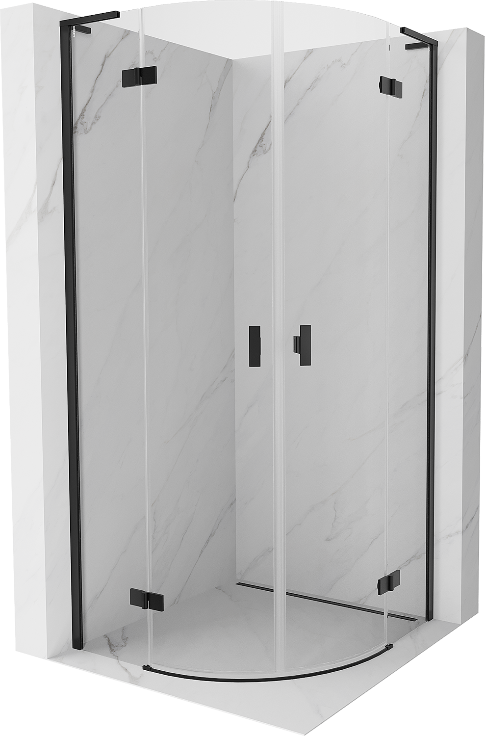 Mexen Mist L kabina prysznicowa półokrągła uchylna 90 x 90 cm, transparent, czarna - 8A33L-090-090-70-00