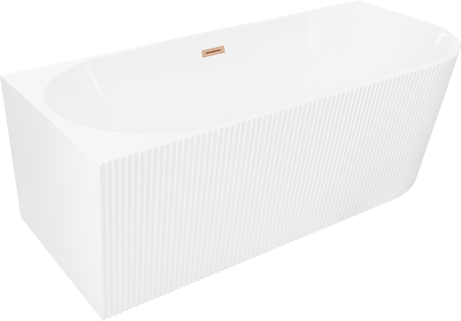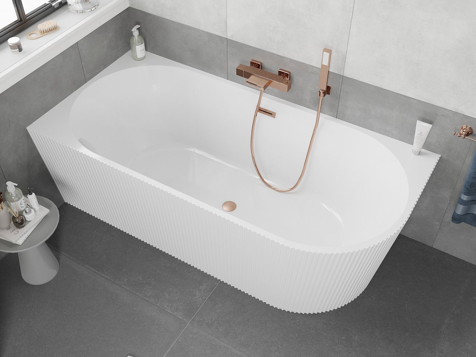 • Mexen Silo wanna wolnostojąca narożna lewa ryflowana  170 x 80 cm, biała, przelew miedź szczotkowana - 52891708000L-65