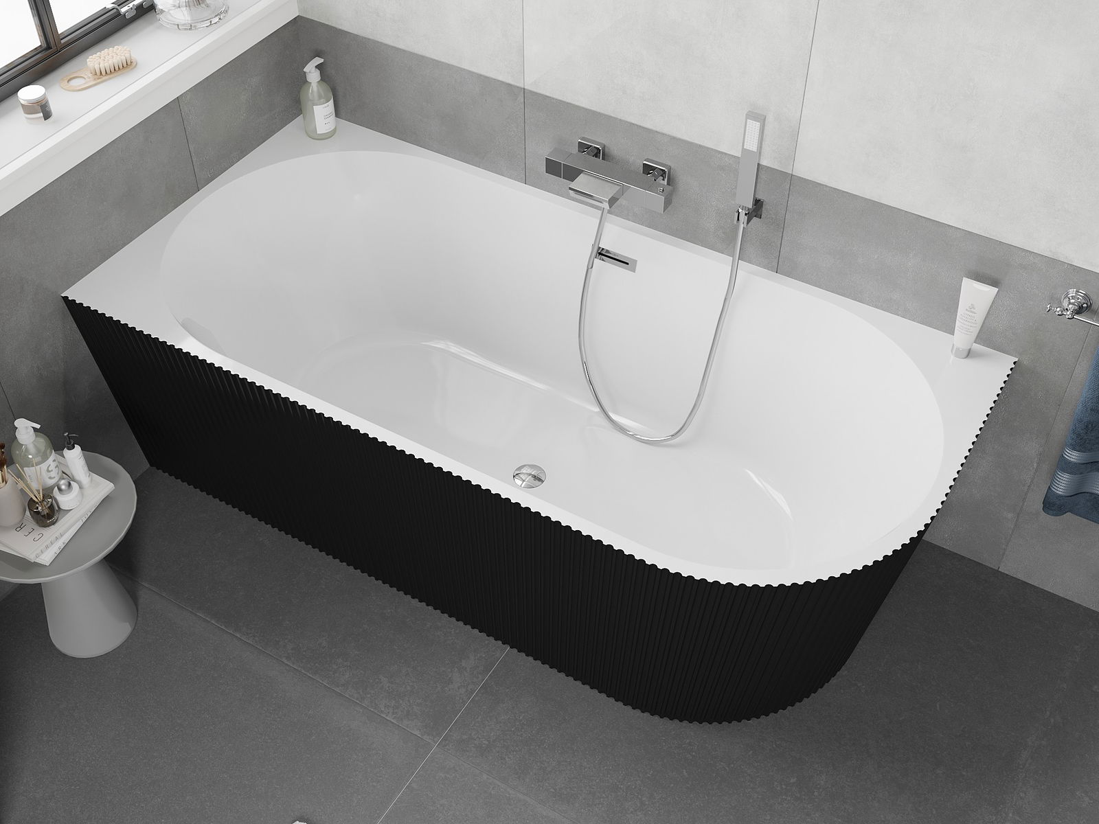 • Mexen Silo wanna wolnostojąca narożna lewa ryflowana  170 x 80 cm, biała/czarna, przelew chrom - 52891708075L-01