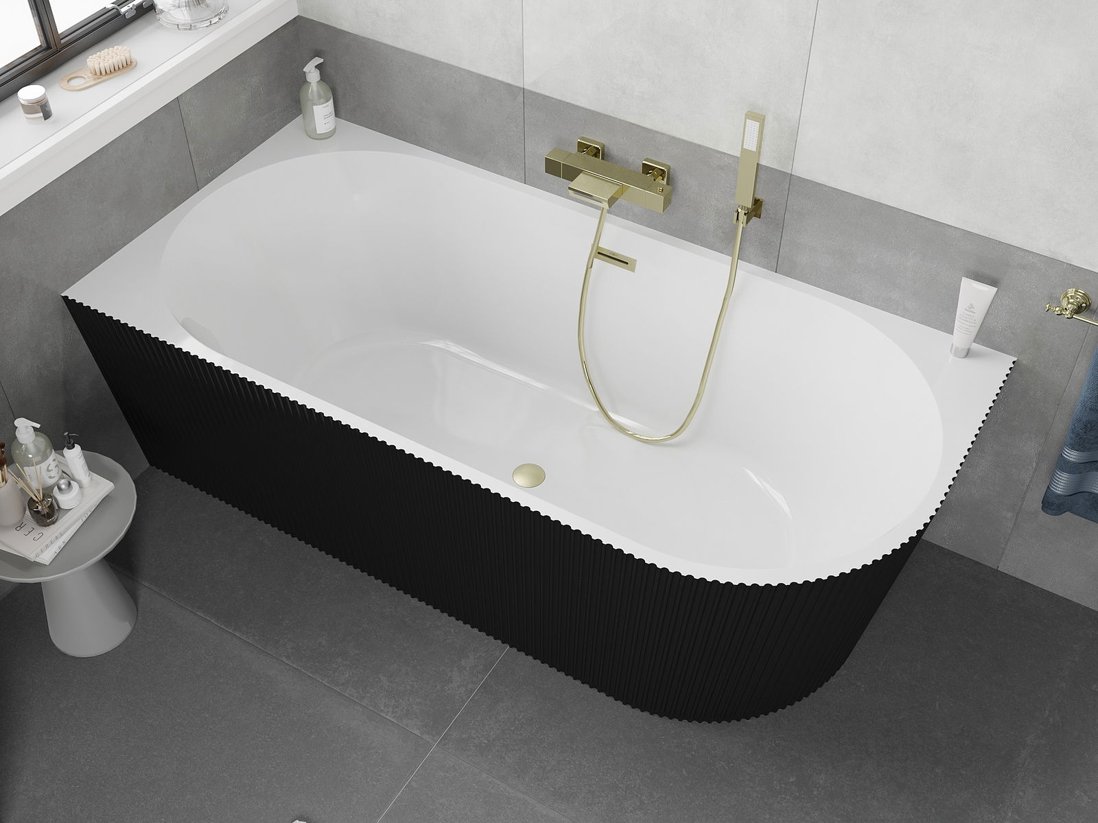 • Mexen Silo wanna wolnostojąca narożna lewa ryflowana  170 x 80 cm, biała/czarna, przelew złoty szczotkowany - 52891708075L-55