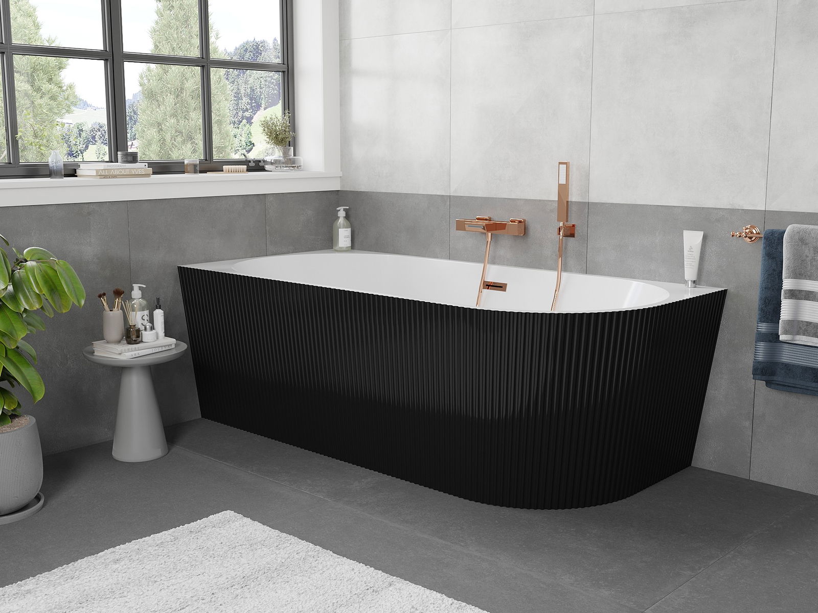 • Mexen Silo wanna wolnostojąca narożna lewa ryflowana  170 x 80 cm, biała/czarna, przelew różowe złoto - 52891708075L-60