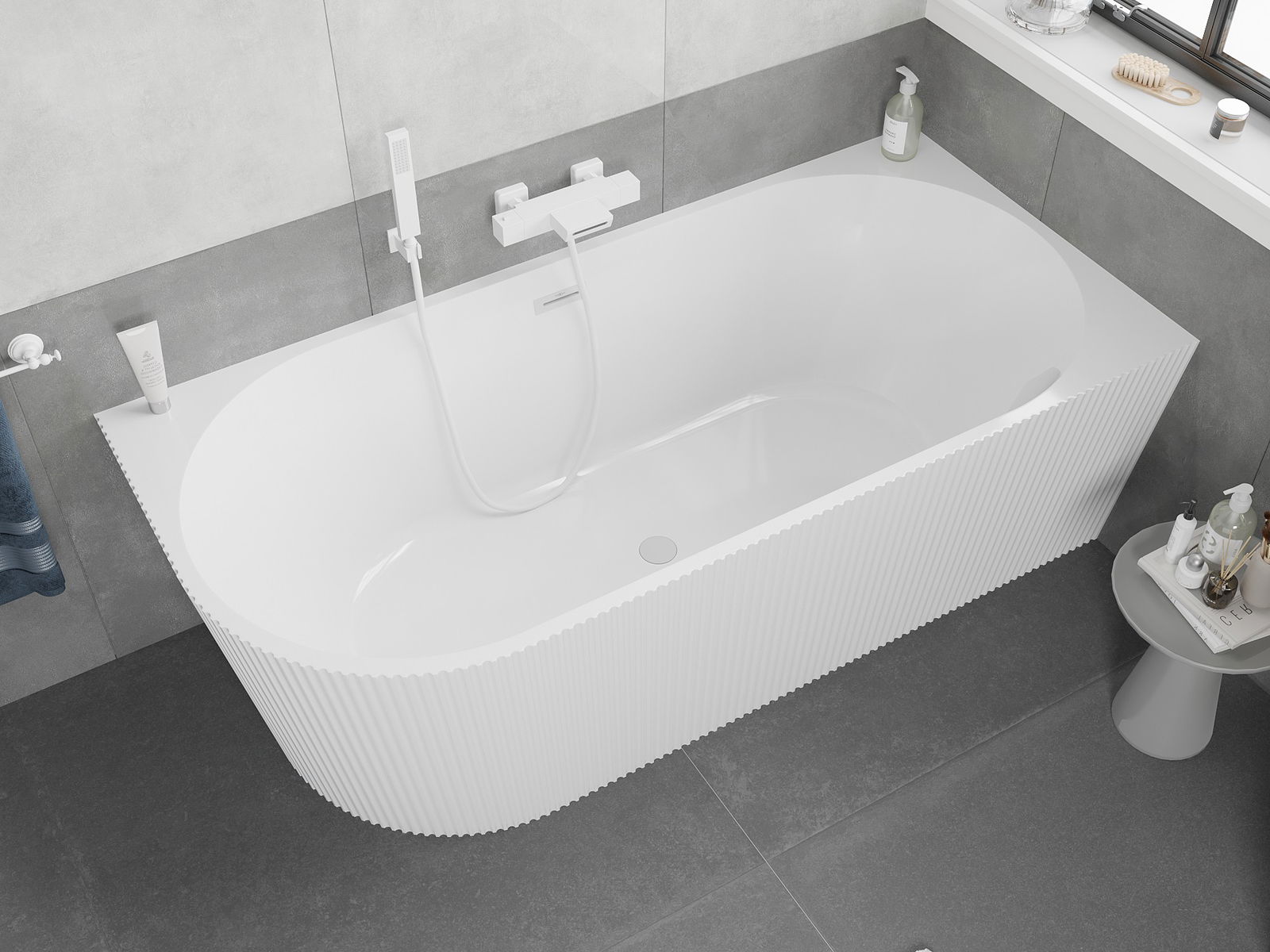 Mexen Silo wanna wolnostojąca narożna prawa ryflowana 150 x 75 cm, biała, przelew biały - 52891507500P-20